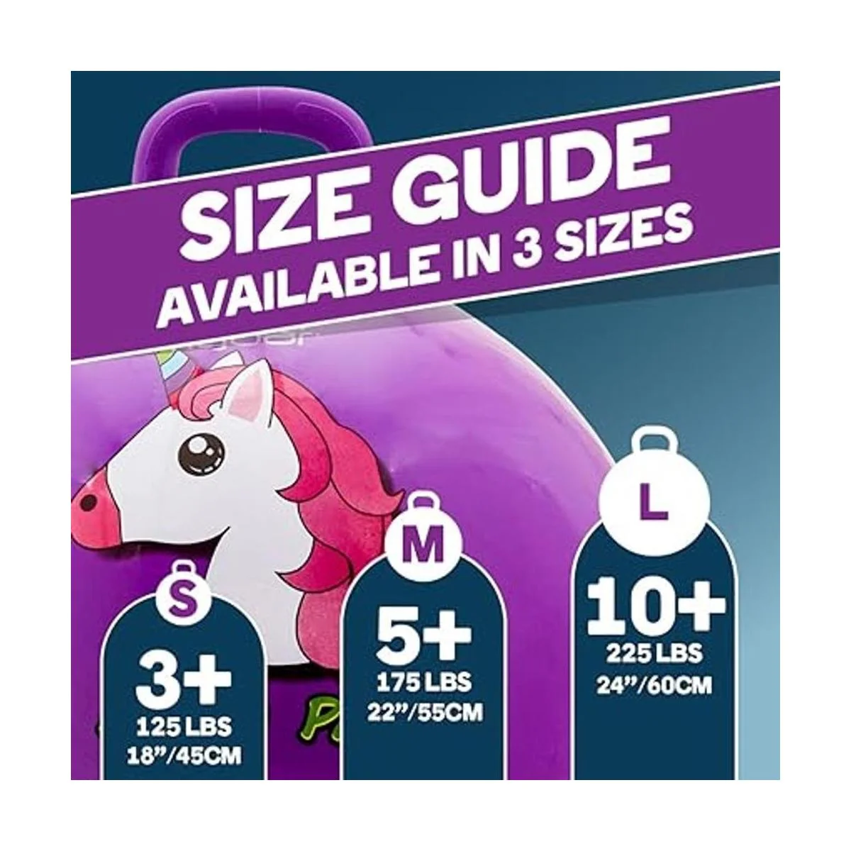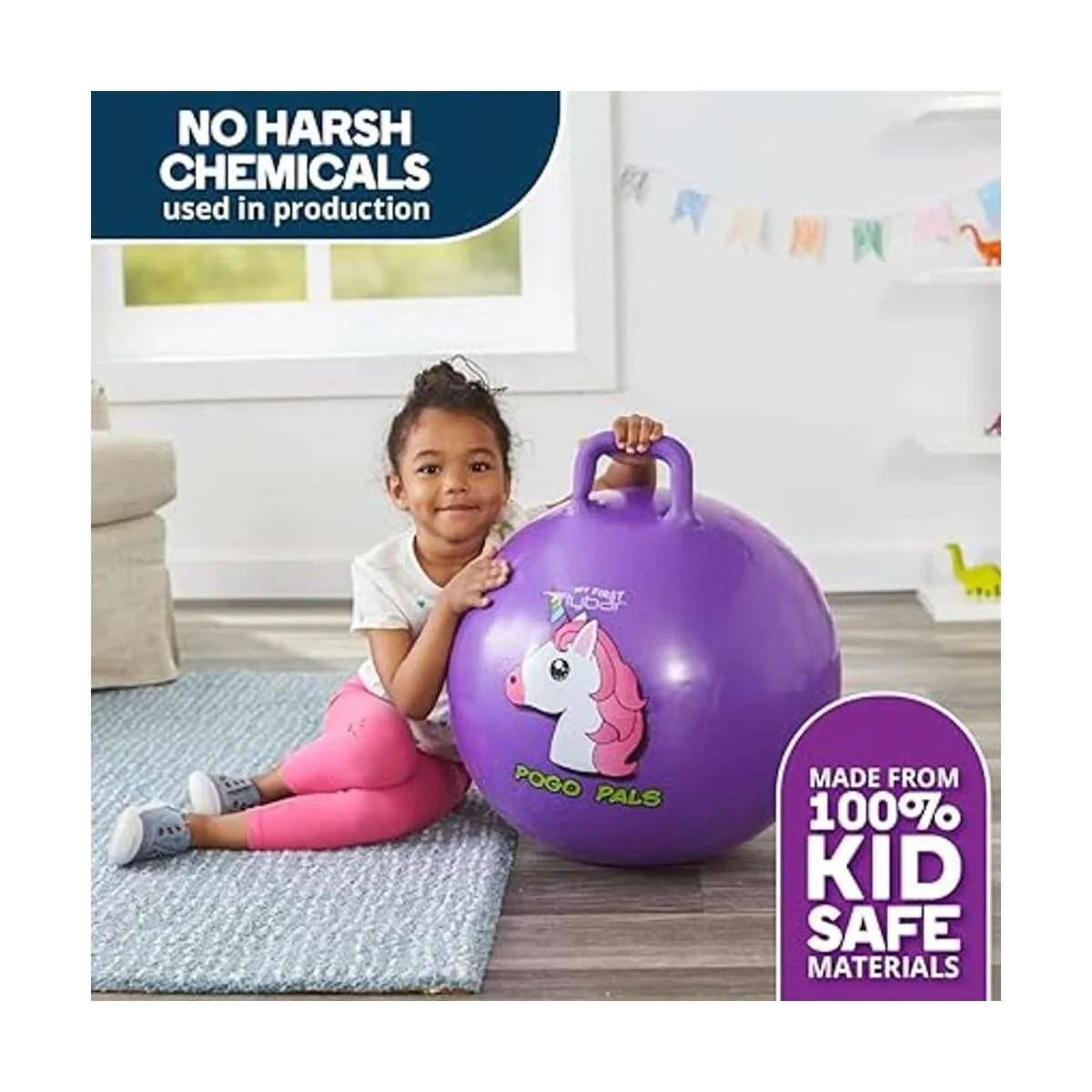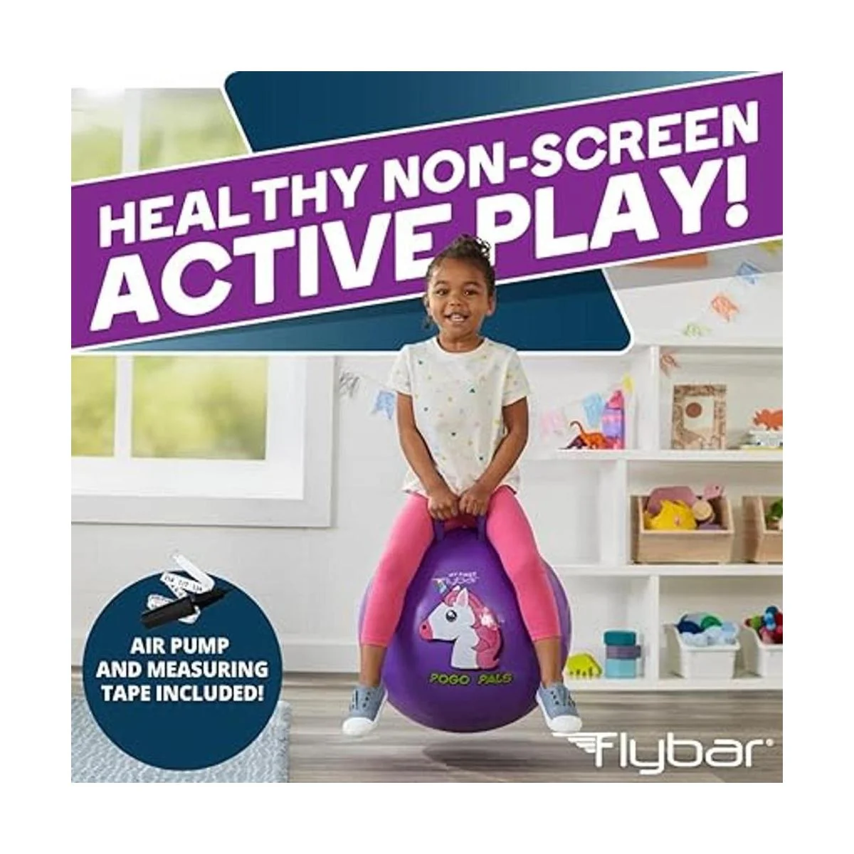 Flybar My First Pogo Pals Pelota de tolva para niños, bola de rebote con asa, bola de equilibrio para niños, juguete para interiores y exteriores, bomba incluida unicornio morado 2, S