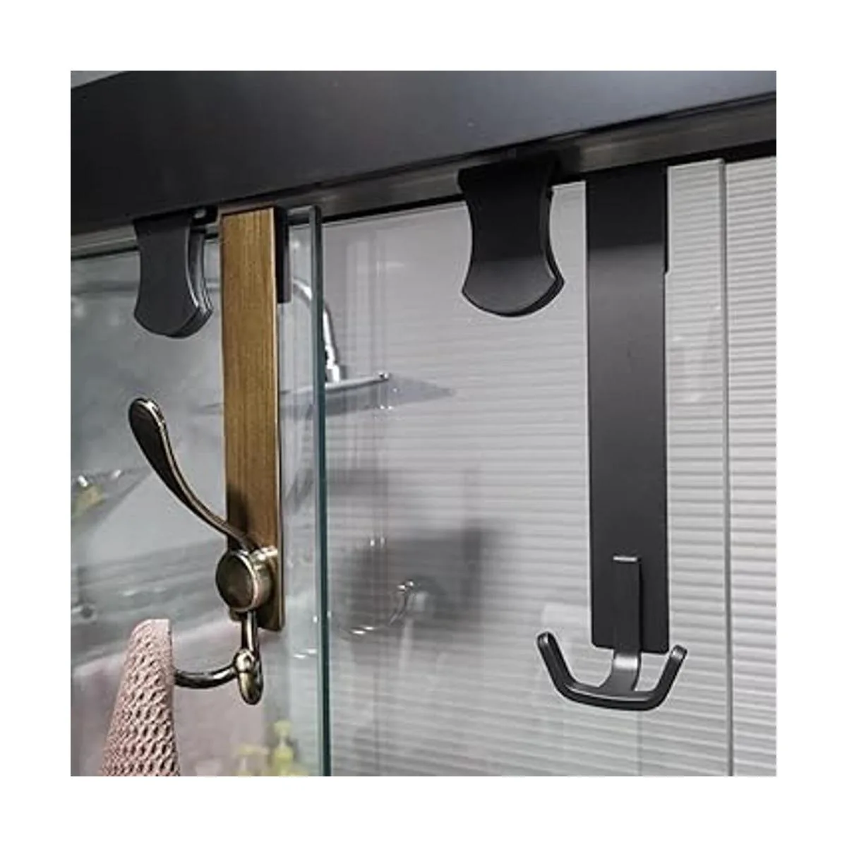 Estilo: el gancho para puerta de ducha es resistente y duradero, con suficiente capacidad de carga. Estilo retro y elegante que hace que tu baño se vea más elegante y minimalista. Paquete de 2: más asequible.