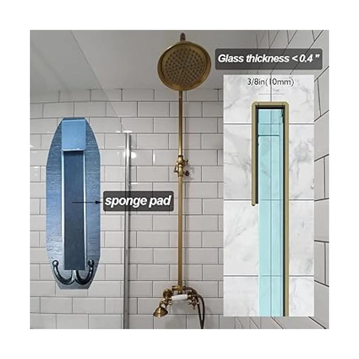 Fácil de instalar: simplemente cuelga en las puertas de ducha de cristal sin marco que tengan menos de 0.394 in de grosor directamente. No requiere taladrar ni pegar, lo que puede ser más cómodo y rápido. Sin agujeros, sin residuos pegajosos. El gancho se puede desmontar en cualquier momento para reemplazar la escena de uso.