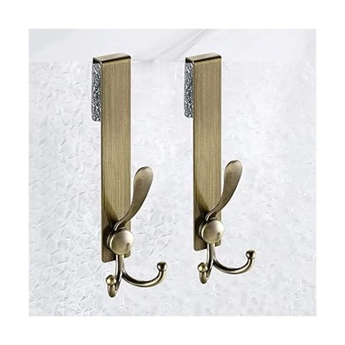 Flybath Ganchos para puerta de cristal de ducha, paquete de 2 ganchos de acero inoxidable 304 antiguos extendidos para toallas, ganchos para puerta de cristal, sin marco, para baño, bronce cepillado