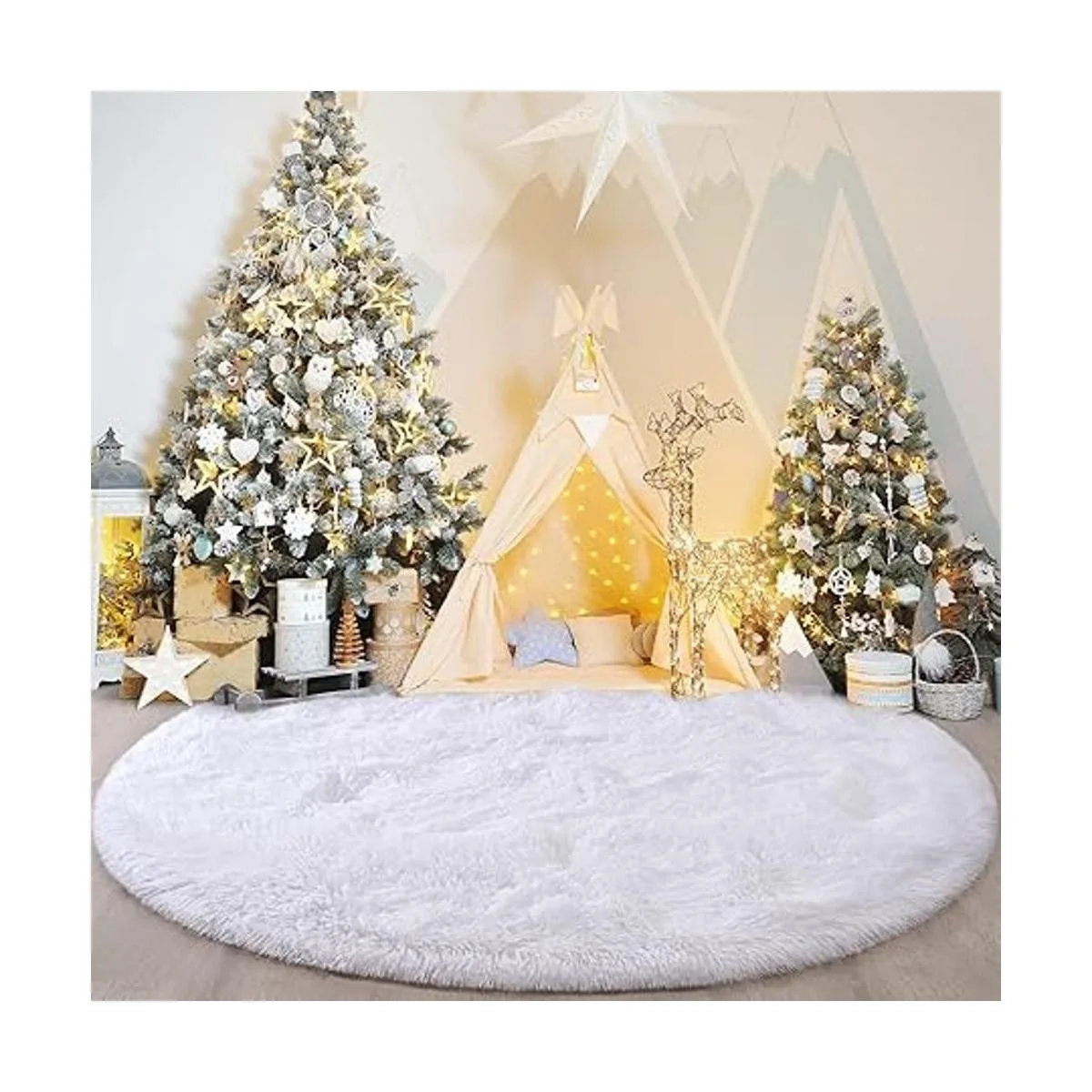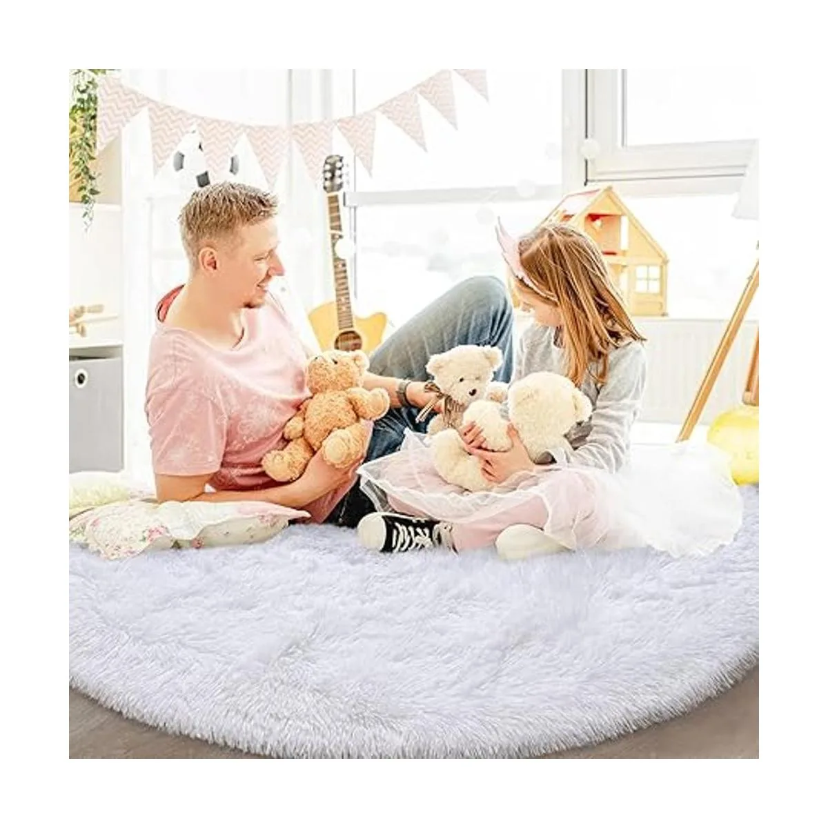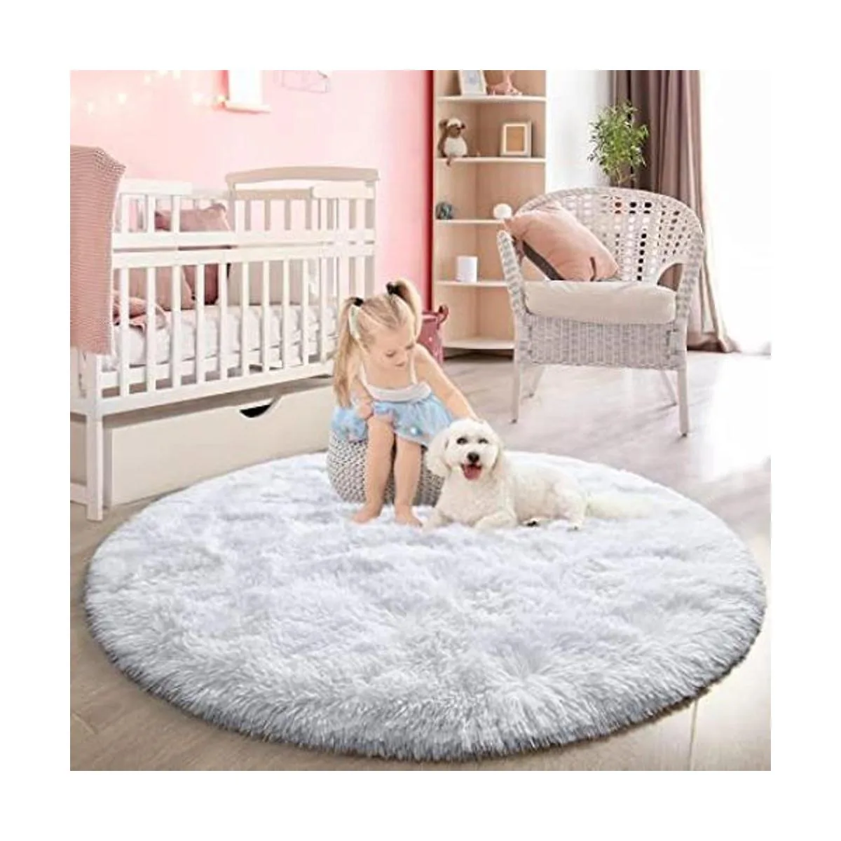 FlyDOIT Alfombra redonda blanca para dormitorio, alfombras circulares súper esponjosas para guardería, alfombra peluda de 4 x 4 pies para habitación de niños, bonita alfombra suave y lanuda para decoración del hogar de niñas, alfombras de felpa mullidas para dormitorio