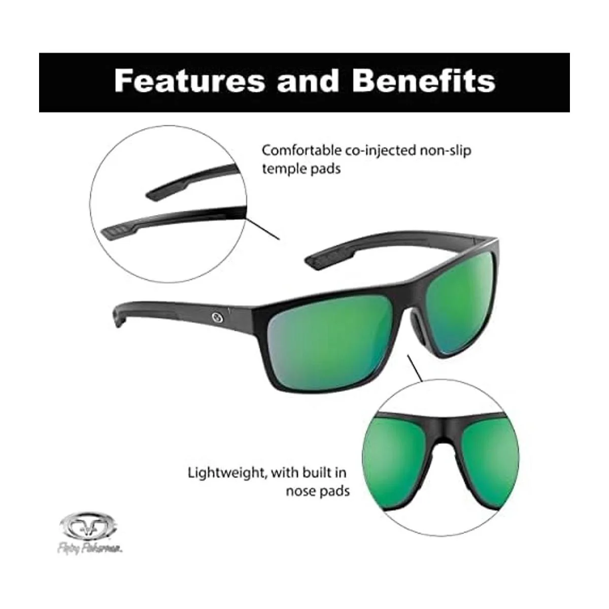 FISHERMAN volador fuera de línea, marco negro mate flotante/lente de espejo ámbar verde. Gafas de sol Flying Fisherman Action Angler con lentes de triacetato polarizadas mejoran la visibilidad para cualquier actividad. Son resistentes a los arañazos, ligeros y duraderos para que puedas llevarlos a todas partes.