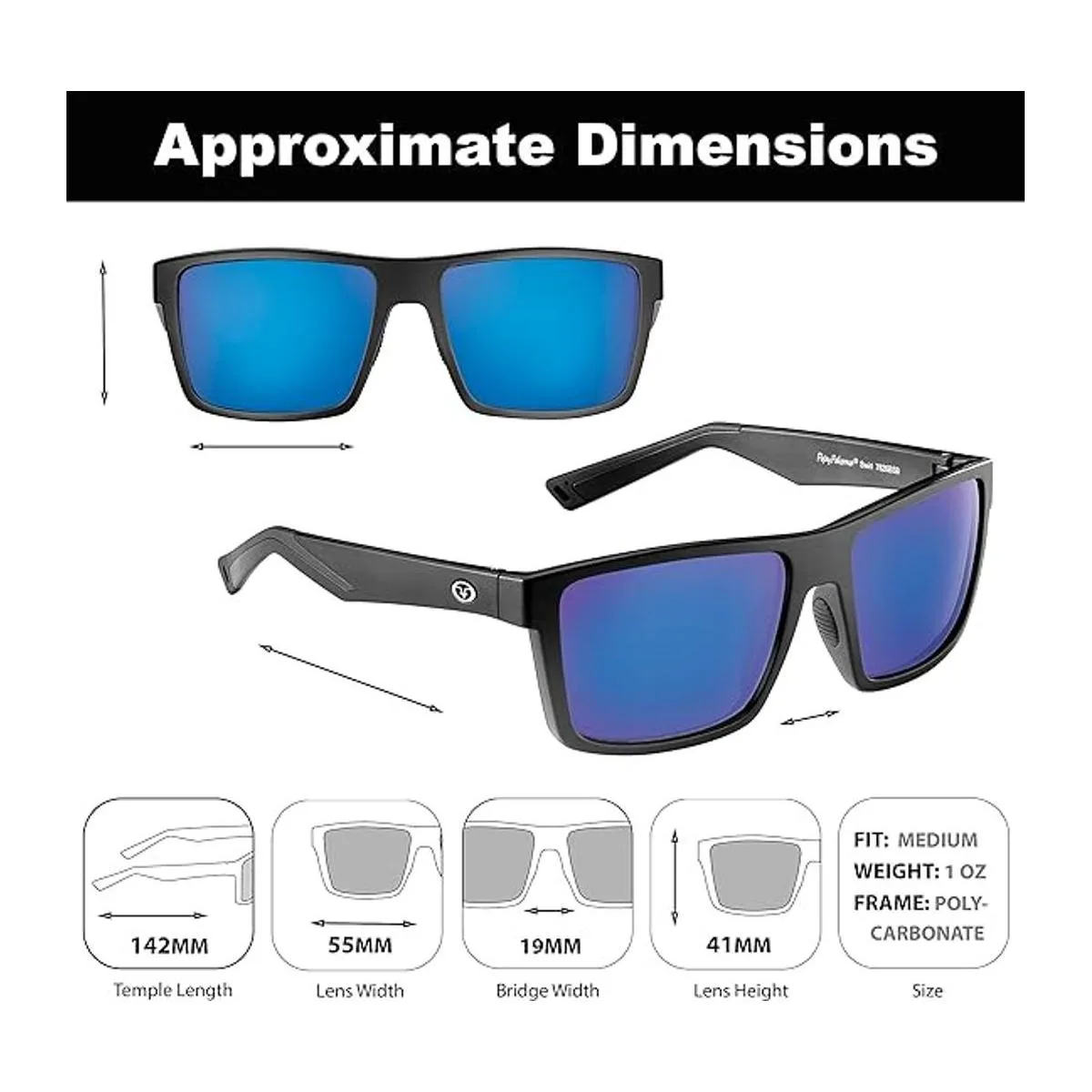 Flying Fisherman Lentes de sol cuadrados polarizados con espiral, marco negro matelente de espejo azul humo, talla M, Marco negro matelente espejo azul ahumado, M