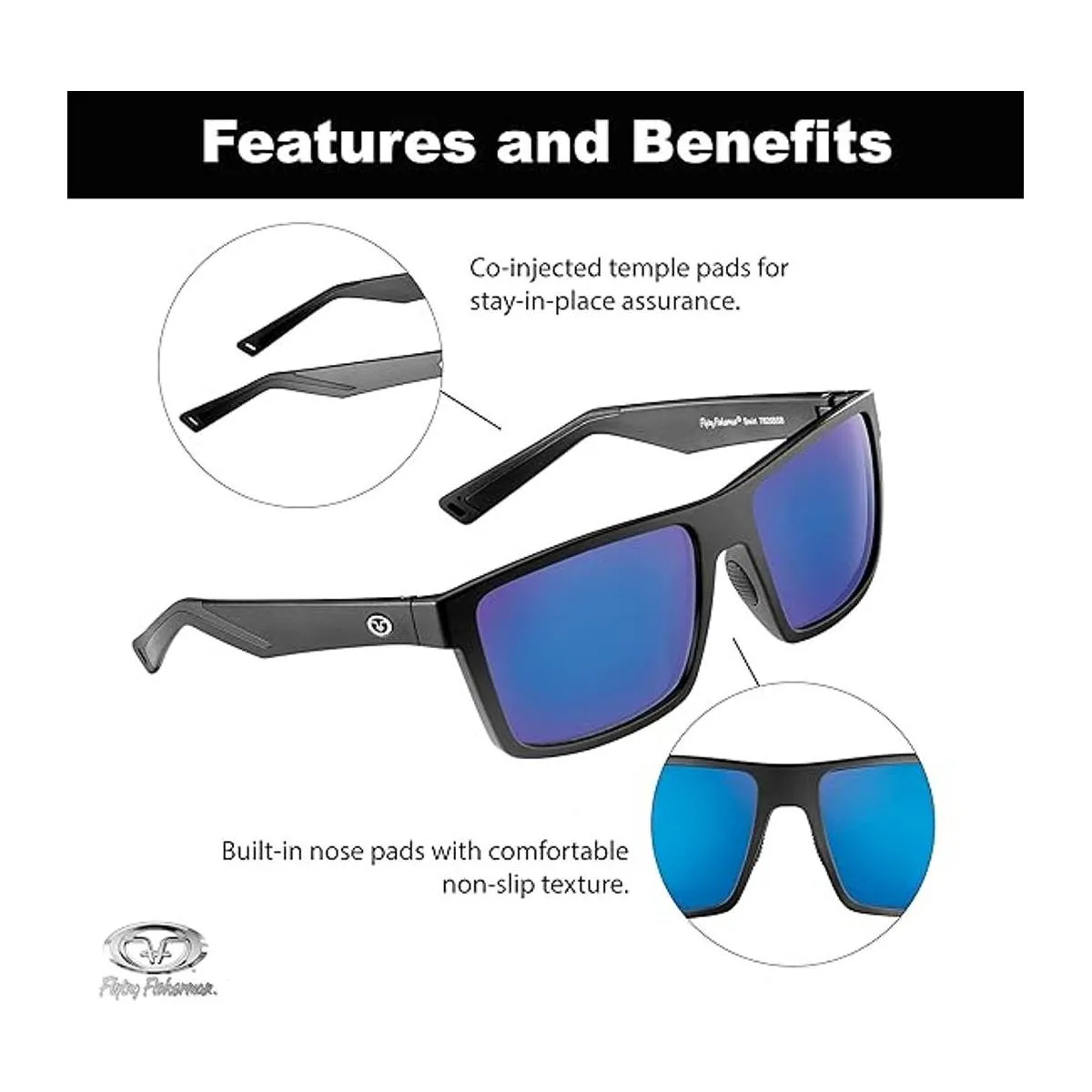 FLYING FISHERMAN Remolino, marco negro mate/lente de espejo ahumado. Las gafas de sol Flying Fisherman Action Angler con lentes de triacetato polarizadas mejoran la visibilidad para cualquier actividad. Son resistentes a los arañazos, ligeros y duraderos para que puedas llevarlos a todas partes