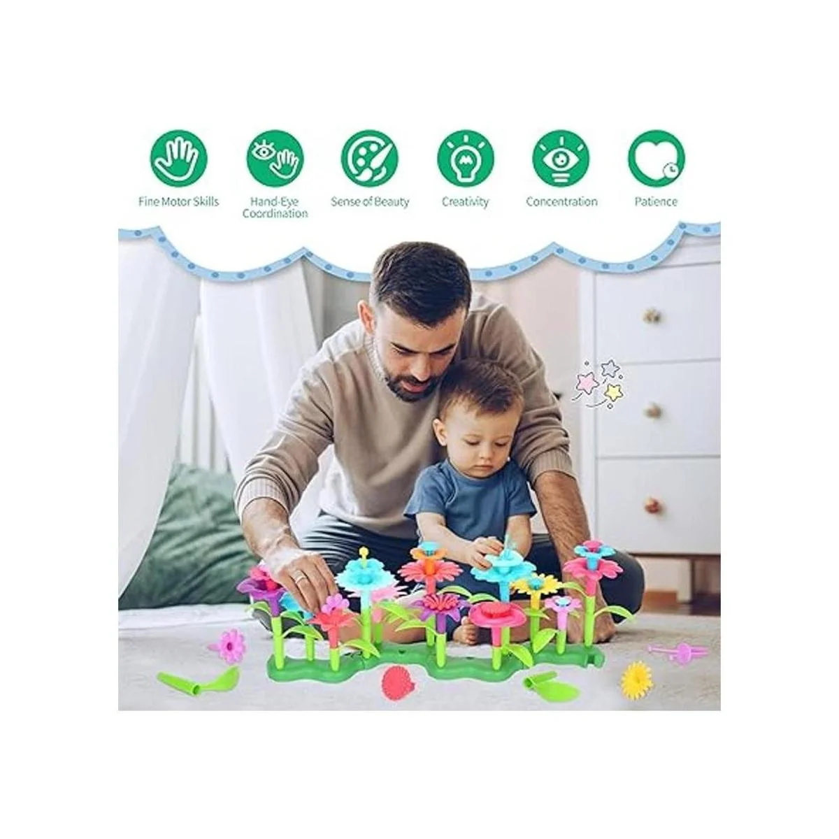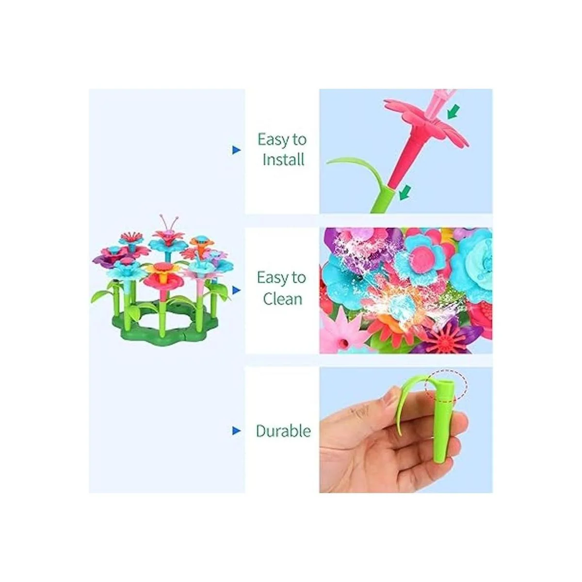 Muy divertido para jugar Con todas las piezas intercambiables, los niños pueden hacer cientos de posibles arreglos florales