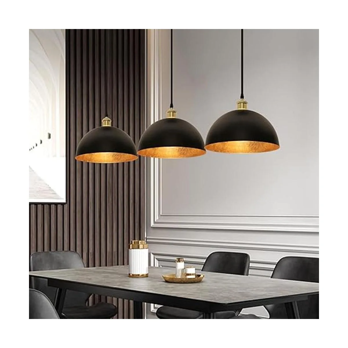 Flynix Lámpara colgante de hoja negra y dorada, lámpara colgante de techo vintage, lámpara colgante de metal ajustable de granja, lámpara industrial para cocina, bar, entrada, restaurante, almacén
