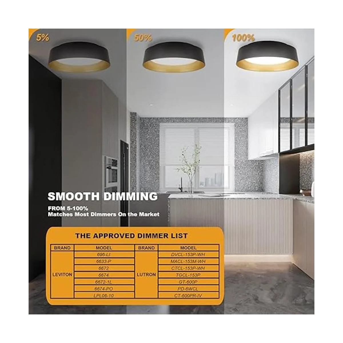 5100 Smooth Dimming The close to ceiling light fixture is compatible with most LED dimmers in the market. You can choose 100 full brightness for working and 5 brightness for the night light. This light fixtures ceiling mount has no noise and no flickers when dimming.