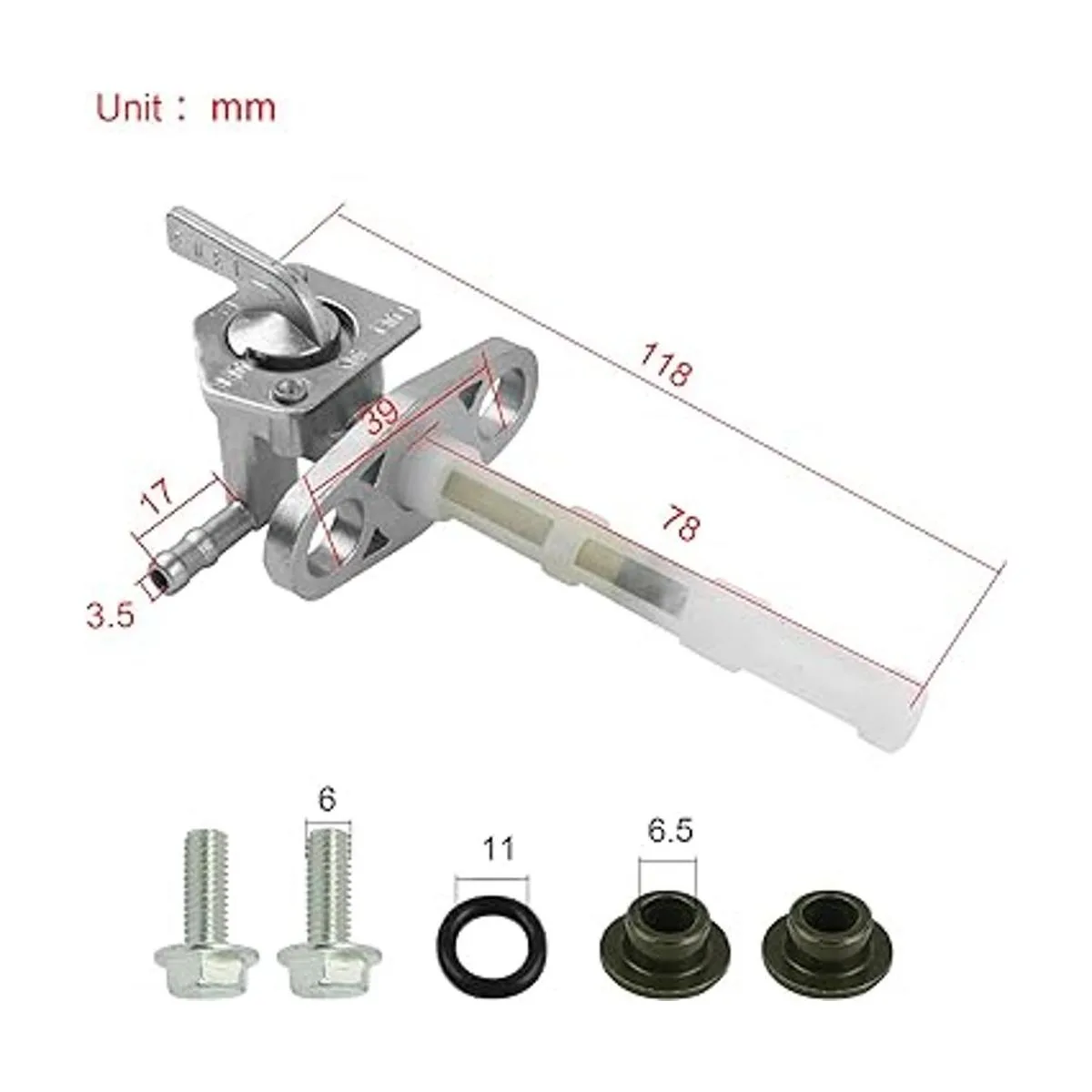 Distancia del orificio de montaje: 1.516 in. Tipo de combustible: válvula de interruptor de combustible. Color: como se muestra en la foto. Interruptor de posiciones: encendido, apagado, reserva.