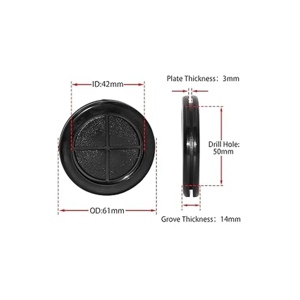 Flyshop Ojal de goma negro de 1.969 in de 2 pulgadas, 1.654 in de 158 pulgadas de identificación, ojales de goma sintética para protección de cables, enchufe de agujero de cortafuegos, redondo, de doble cara, paquete de 4