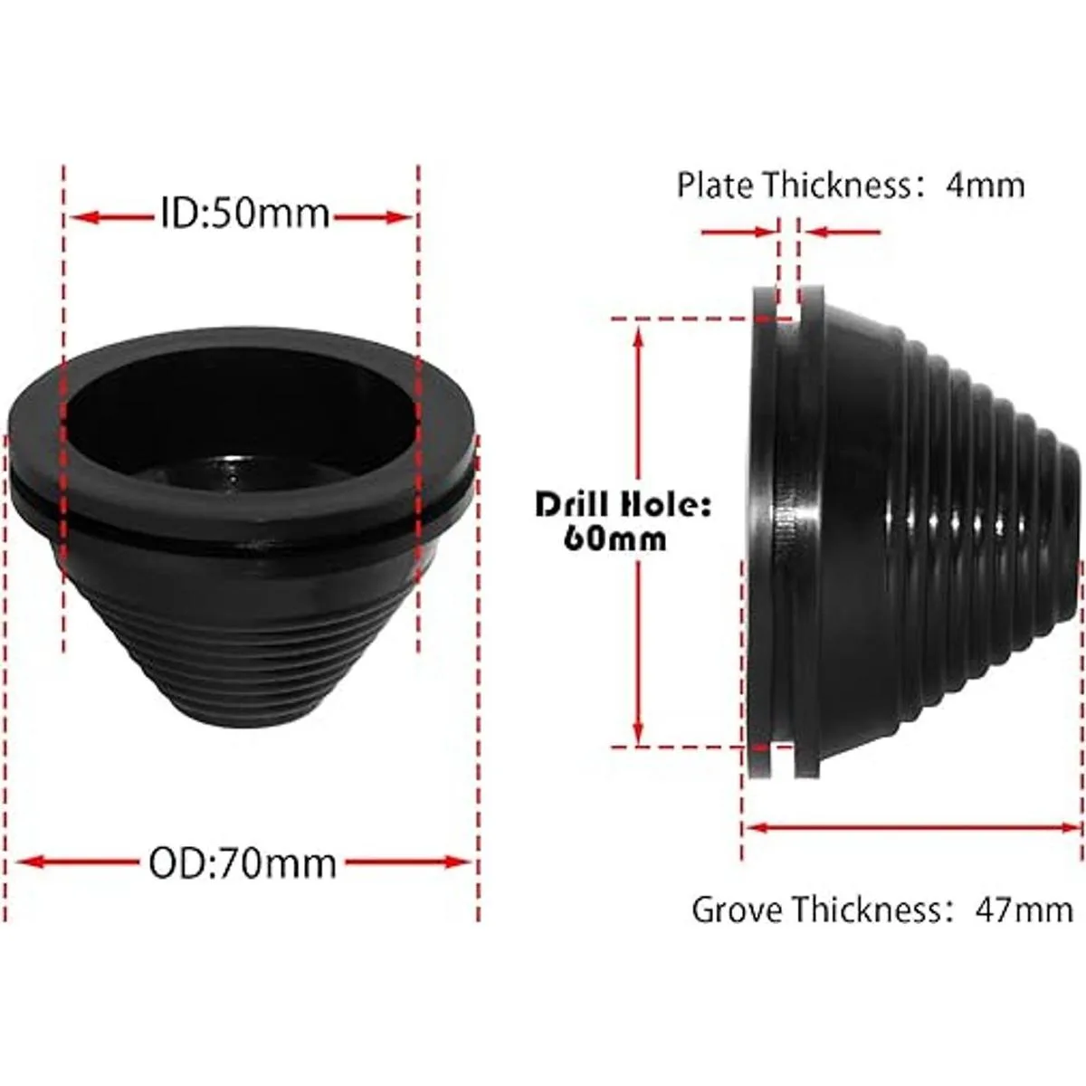 Flyshop Ojal negro de 2.362 in 238 pulgadas en forma de torre, 1.969 in 2 pulgadas de identificación, ojales de goma sintética protección de cables, enchufe de goma para cortafuegos, paquete de 4