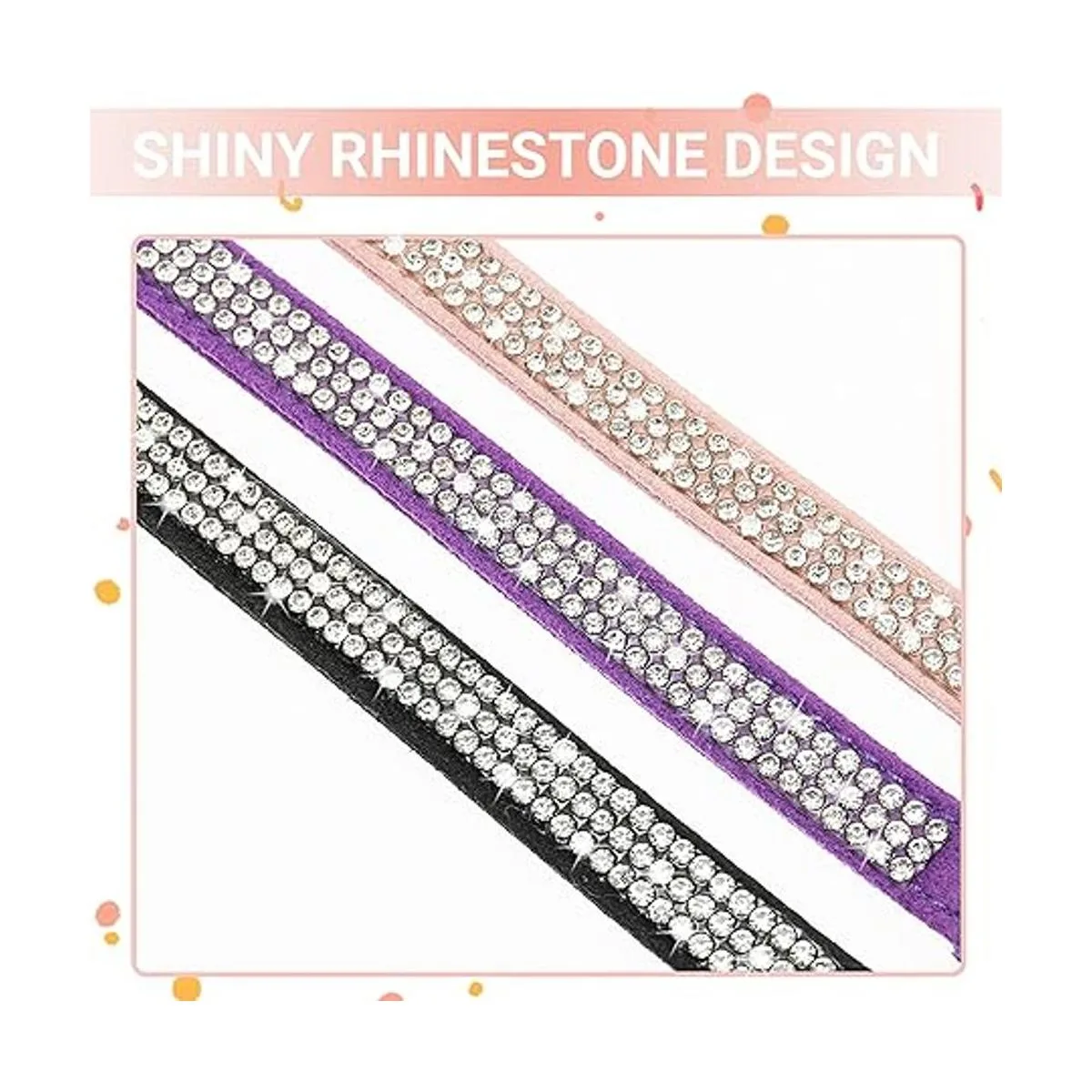 FLYSTAR Collar de gato con campana, bonito collar de gato para niños y niñas, gatos, con diamantes de imitación, ajustables, de terciopelo suave, para mascotas, para gatos SML, cachorros (rosa, morado, negro)