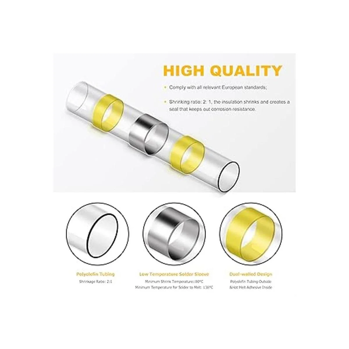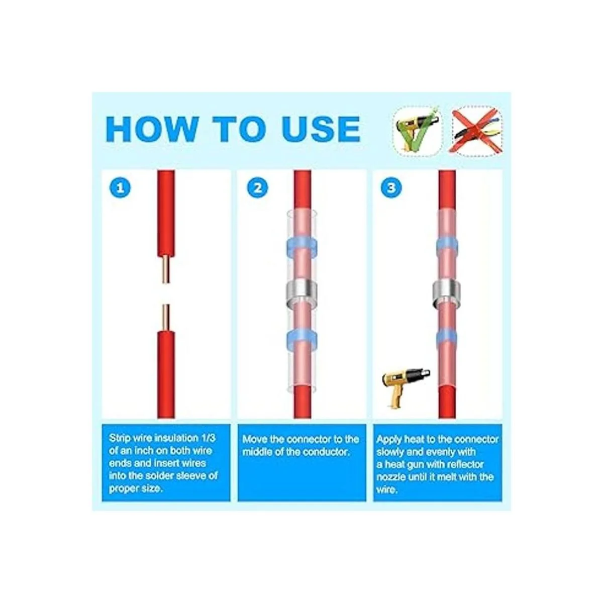 Conexión duradera: el tubo se reduce en tamaño y la soldadura se derrite y fluye muy bien a través de los cables pelados para garantizar una fuerte sujeción, y el cable nunca se deslizará fuera del conector