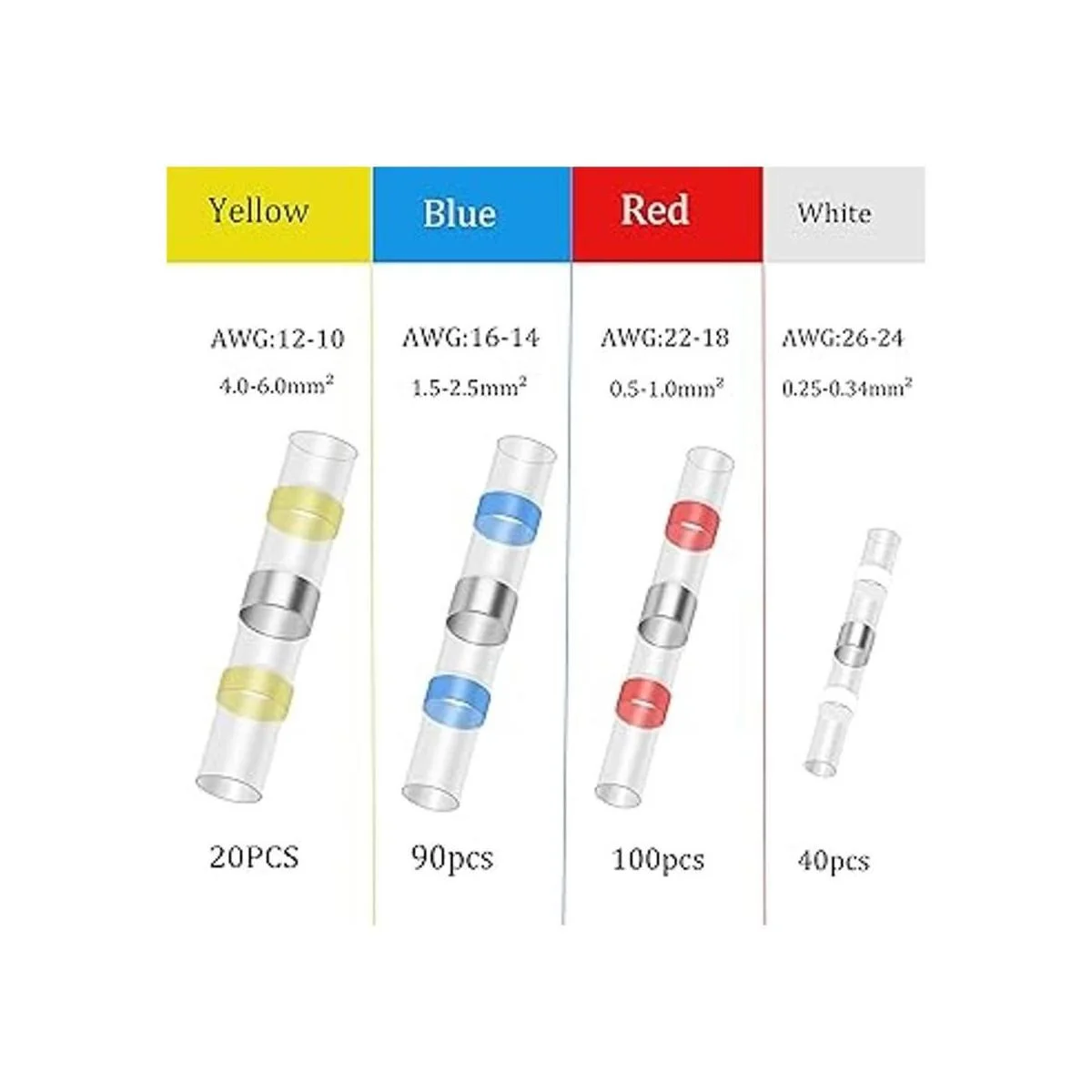 Flytuo 250 conectores de alambre de sellado de soldadura, conectores de soldadura autotermocontraíbles impermeables, terminales eléctricos aislados, empalme de alambre para automóviles, barcos marinos, remolques, camiones