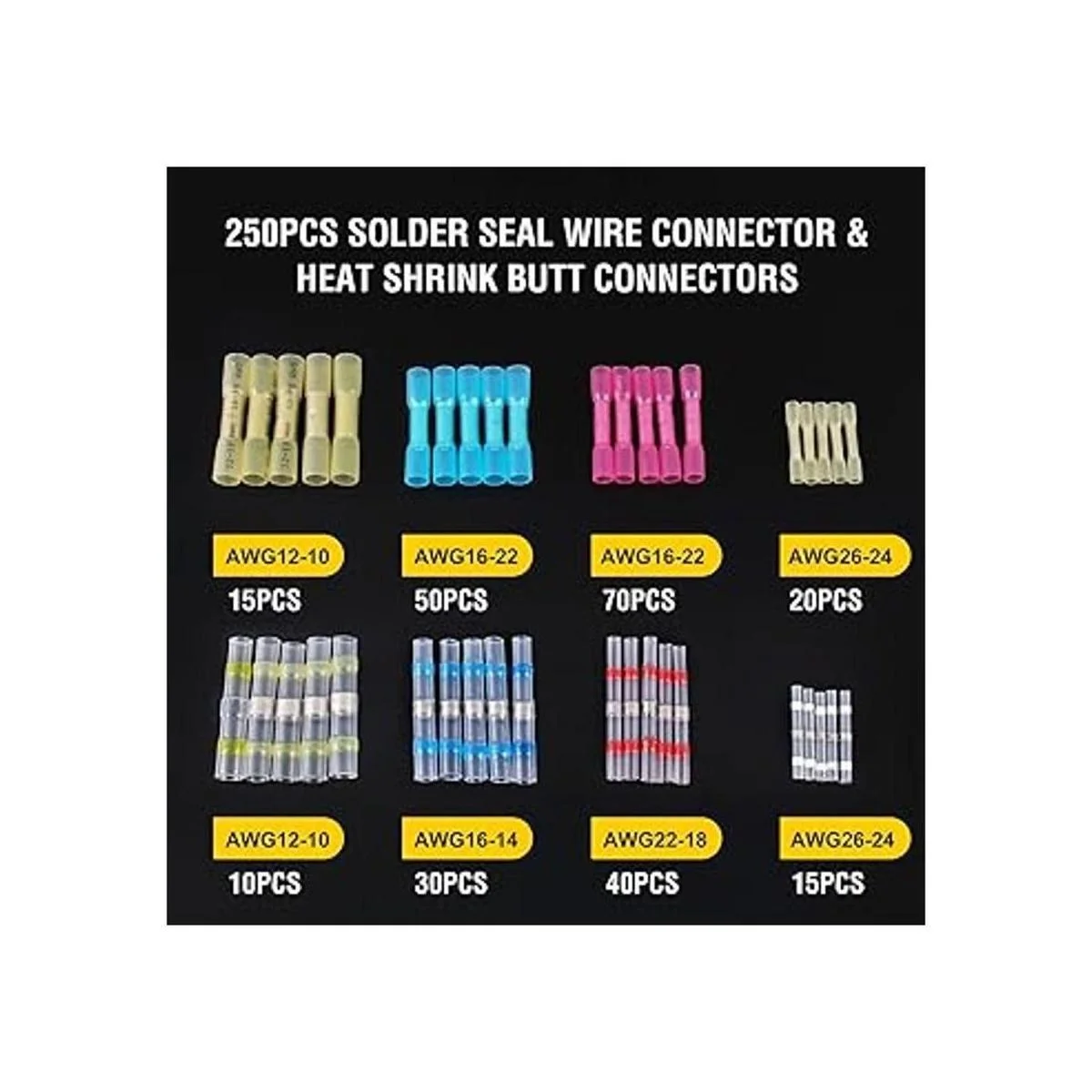 Flytuo Conectores de alambre termorretráctiles con conector de alambre de sellado de soldadura, 250 terminales de alambre de empalme eléctrico impermeable para juntas de barco y camión de automóvil marino