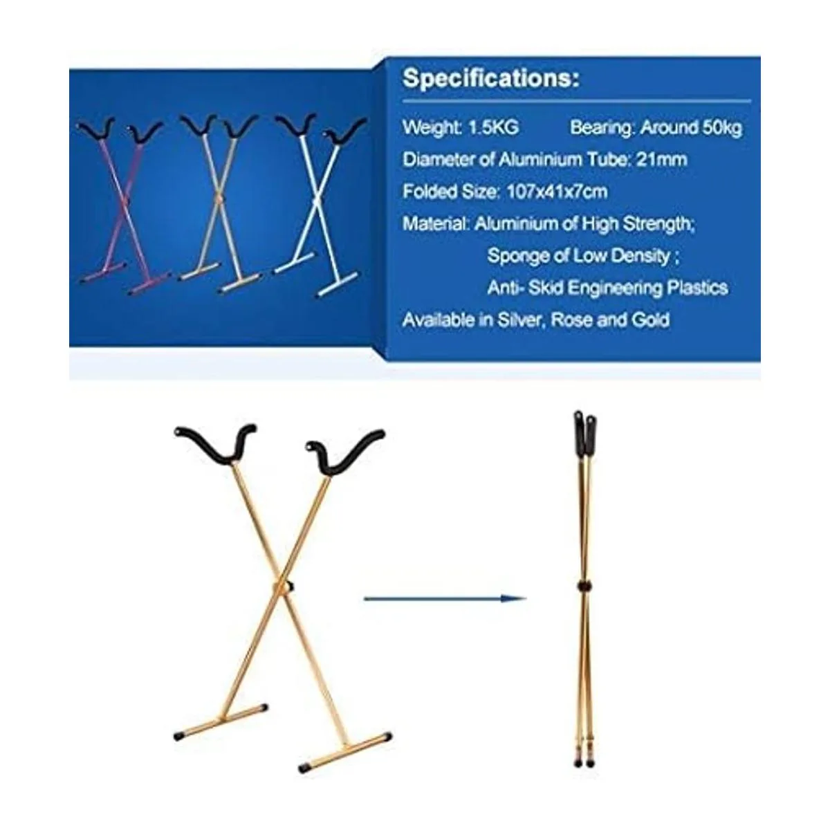 Diámetro del tubo de aluminio: 0.827 in. Tamaño plegado: 42.1 x 16.1 x 2.8 in
