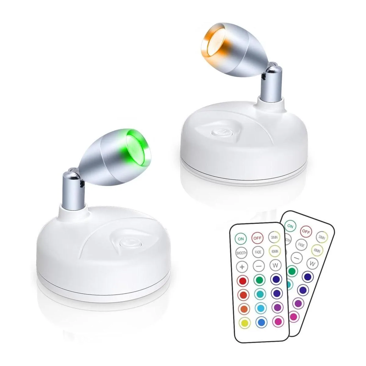 Foco inalámbrico funciona con pilas con control remoto, luces LED RGB W de disco portátil, ángulo de luz ajustable con regulador y temporizador para pintura de arte