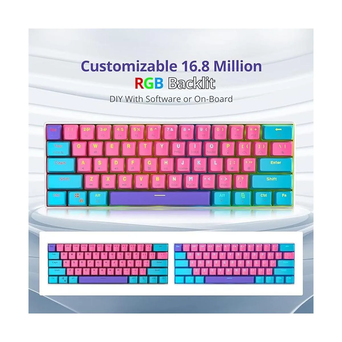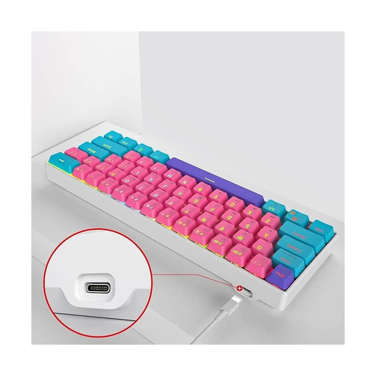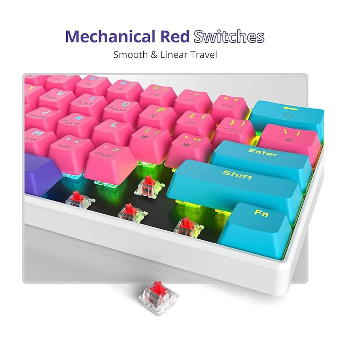 Fogruaden Teclado mecánico del 60 , teclado para juegos de 61 teclas, retroiluminación RGB, teclado con cable ultra compacto del 60 para jugadores de PC WinMac, fácil de llevar en viaje interruptor rosa, rojo