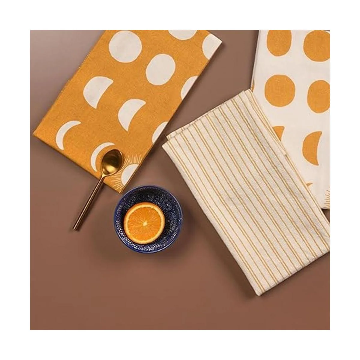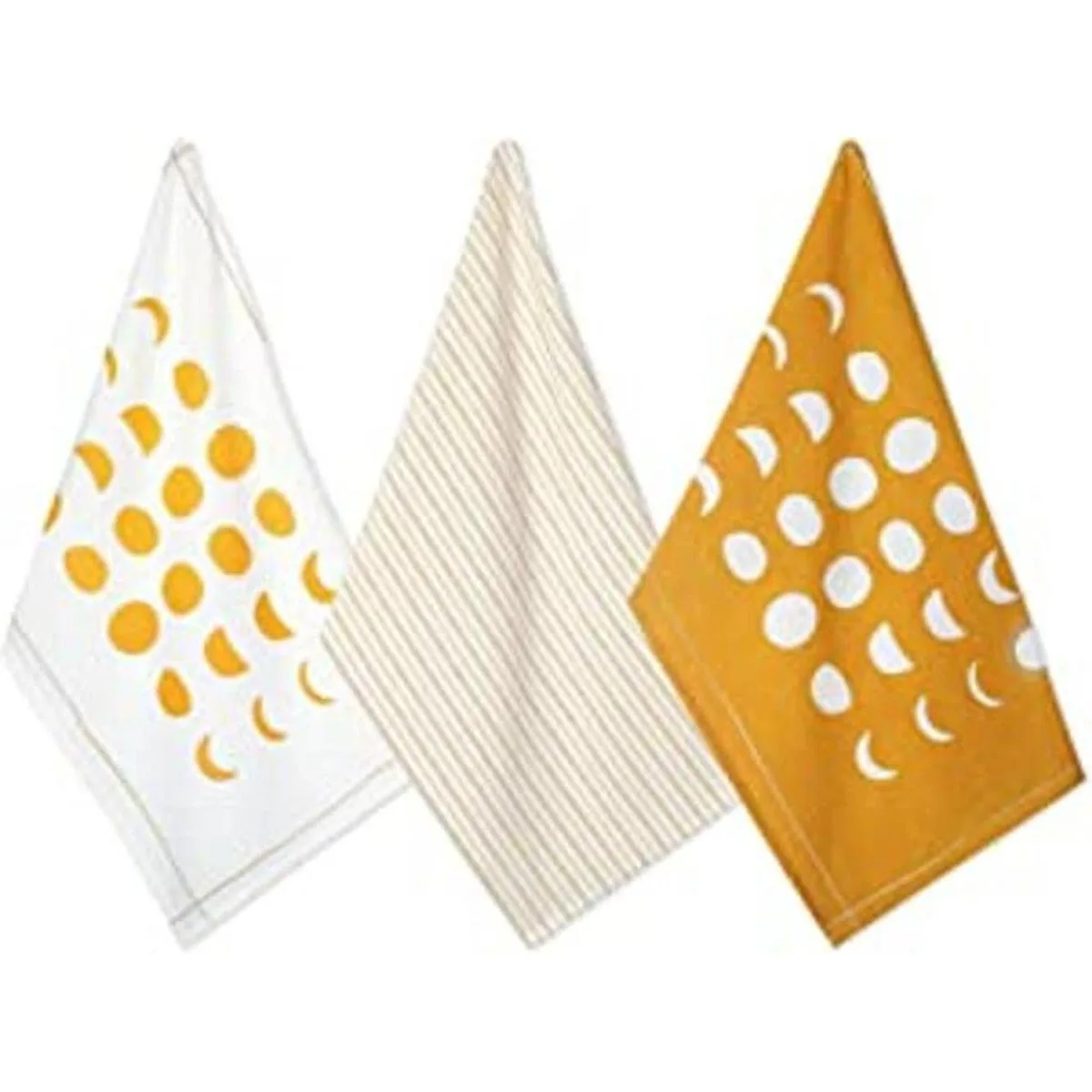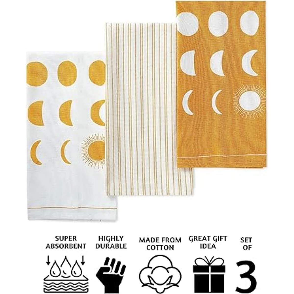 Folkulture Juego de toallas de cocina y paños de cocina, 18 x 28 pulgadas, toallas de cocina altamente absorbentes con bucle para colgar, juego de 3 paños de cocina bohemios para decoración de granja para primavera, 100 algodón, mostaza