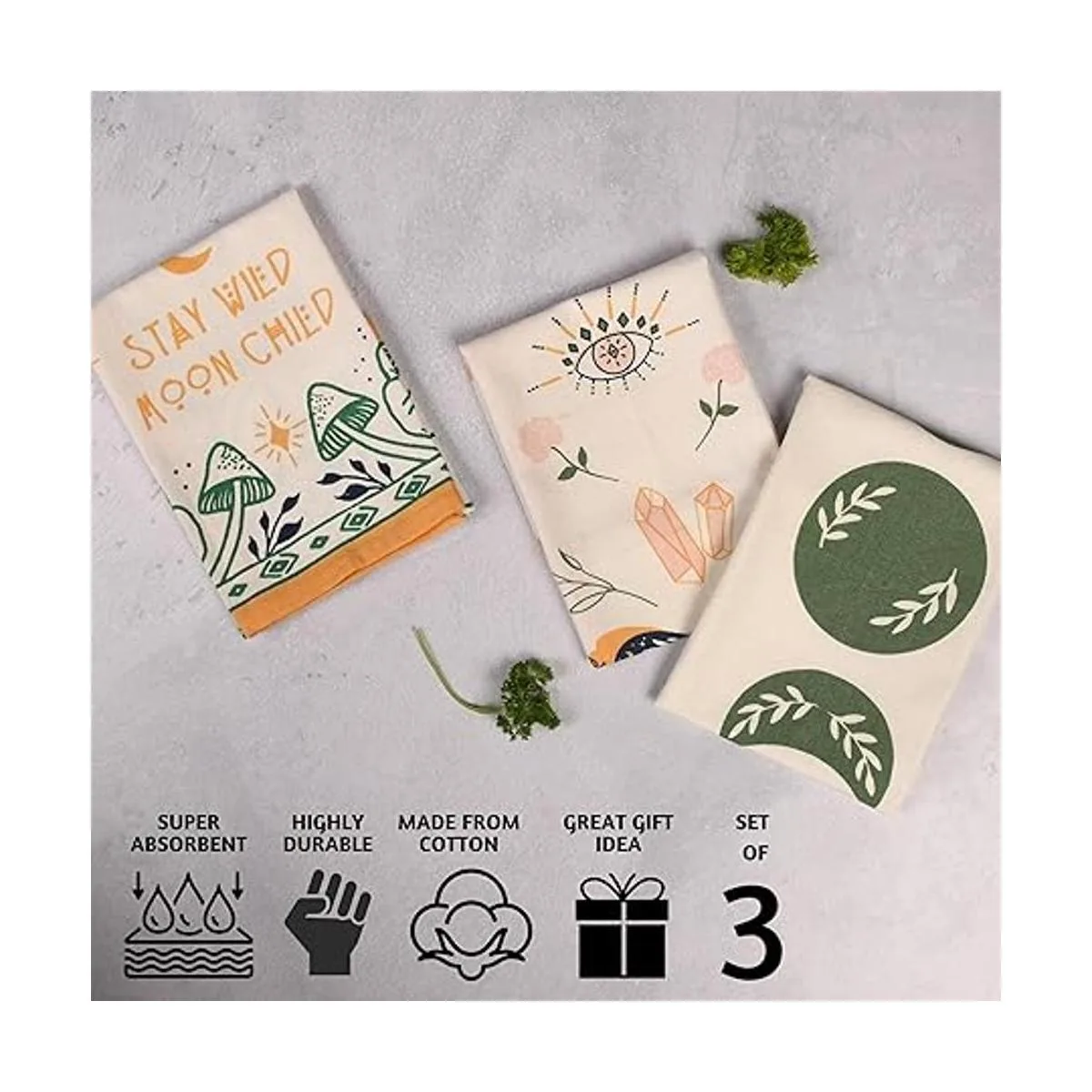 Folkulture Toallas de cocina o paños de cocina, 20 x 26 pulgadas, modernas toallas de mano de cocina para decoración de cocina o paños de té, juego de 3 paños de cocina de algodón y paños de cocina para decoración de granja, mágicos