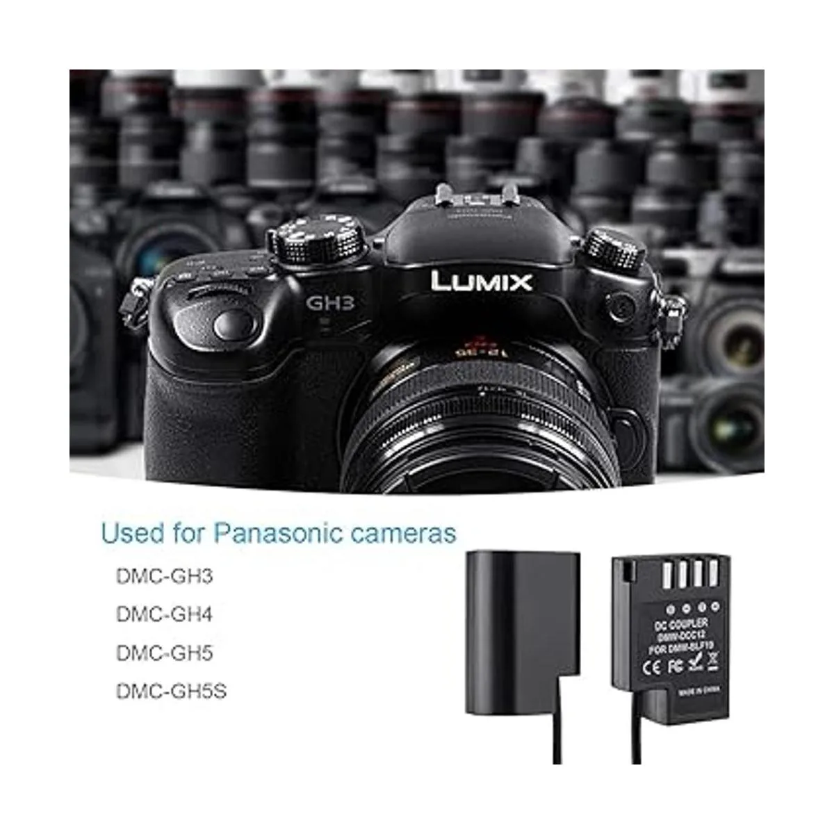 DMWBLF19 Batería falsa con cable en espiral DC8V/2A 0.217 0.083 in, necesita conectar la interfaz de 8V del adaptador, funciona para cámaras Panasonic Lumix DMCGH3 DMCGH4 DMCGH3K DMCGH4K DCGH5 DCG9.