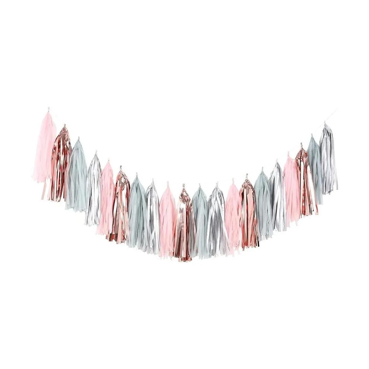 Fonder Mols Guirnalda de papel de seda para manualidades, 20 unidades, color gris, rosa, oro rosa, plateado, para baby shower, cumpleaños, despedida de soltera, decoración A04