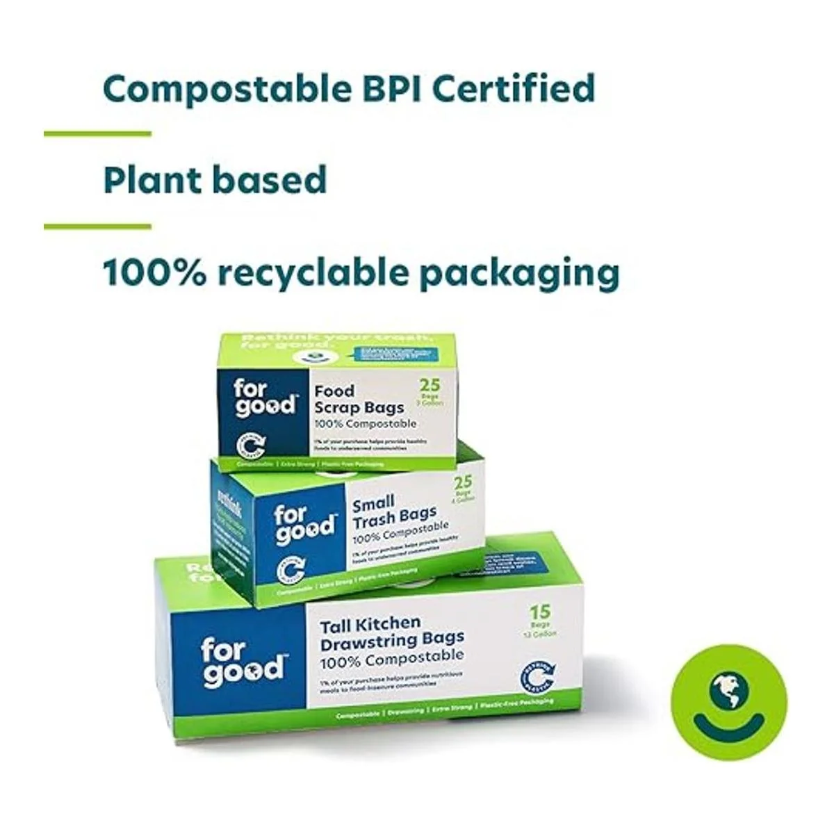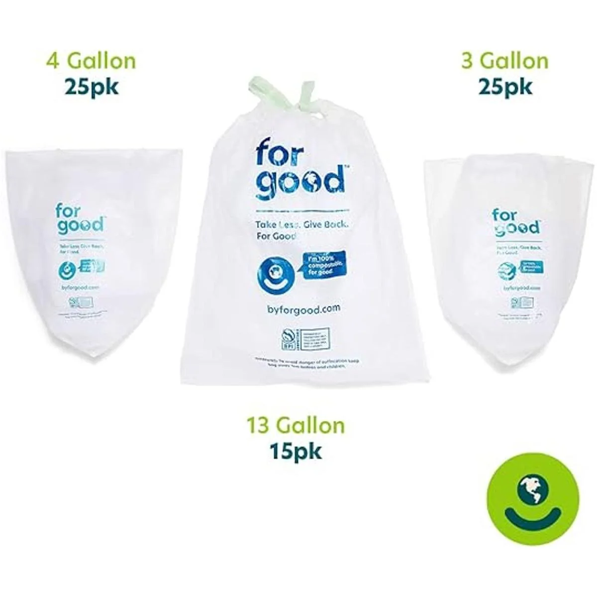 FOR GOOD Contenedor biodegradable de 4 galones, extrafuertes, resistentes a desgarros y fugas, 25 unidades, ninguno