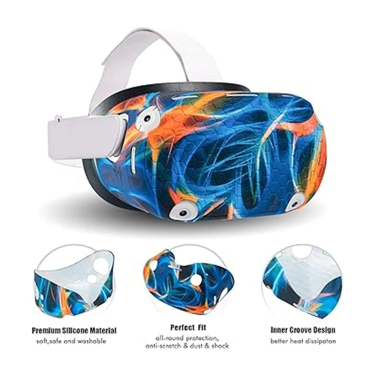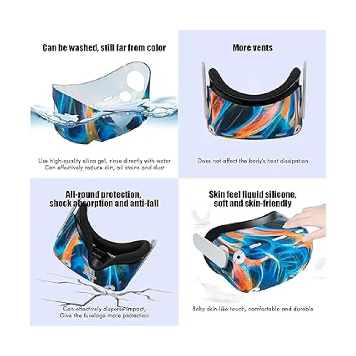 for Oculus Quest 2 Accessories, Quest 2 VR Silicone face Cover, VR Shell Cover,Quest 2 Touch Controller Grip Cover,Protective Lens Cover,Disposable Eye Cover. Aurora