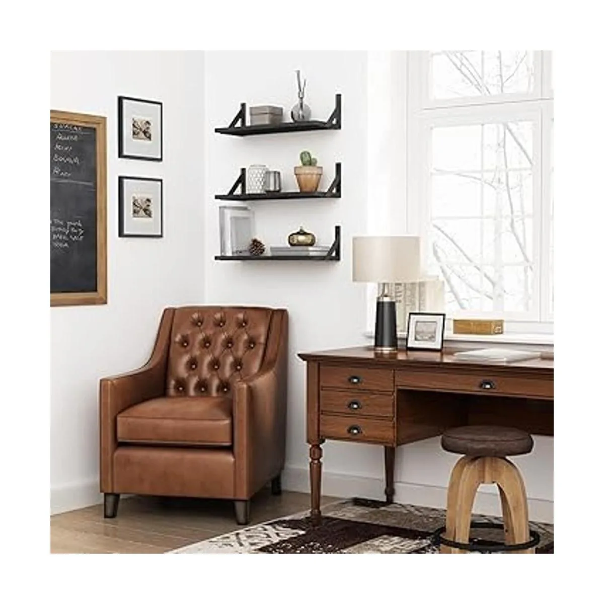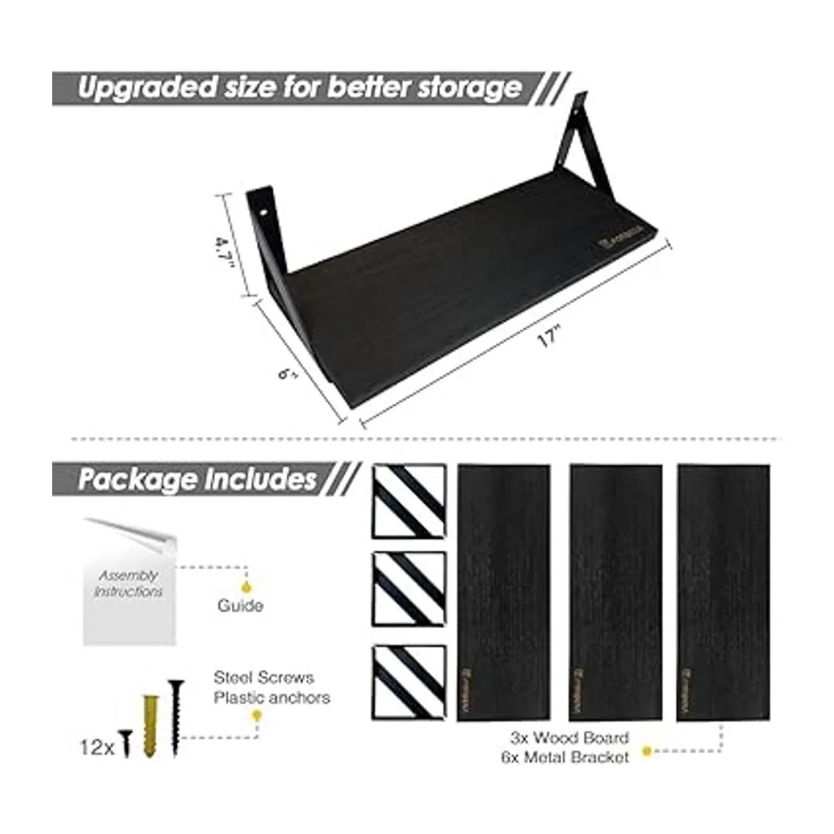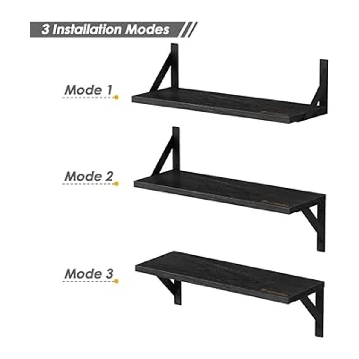 Forbena Juego de 3 estantes flotantes negros para baño, estantes de madera para dormitorio, estante de pared rústico para almacenamiento de dormitorio, organizador de baño, sala de estar, cocina, oficina negro