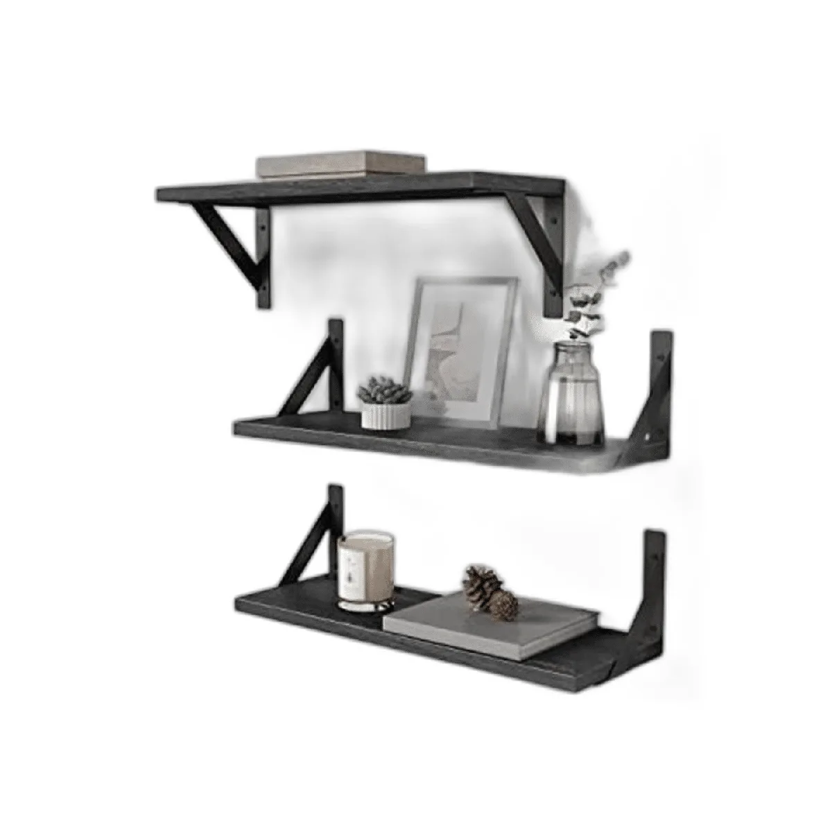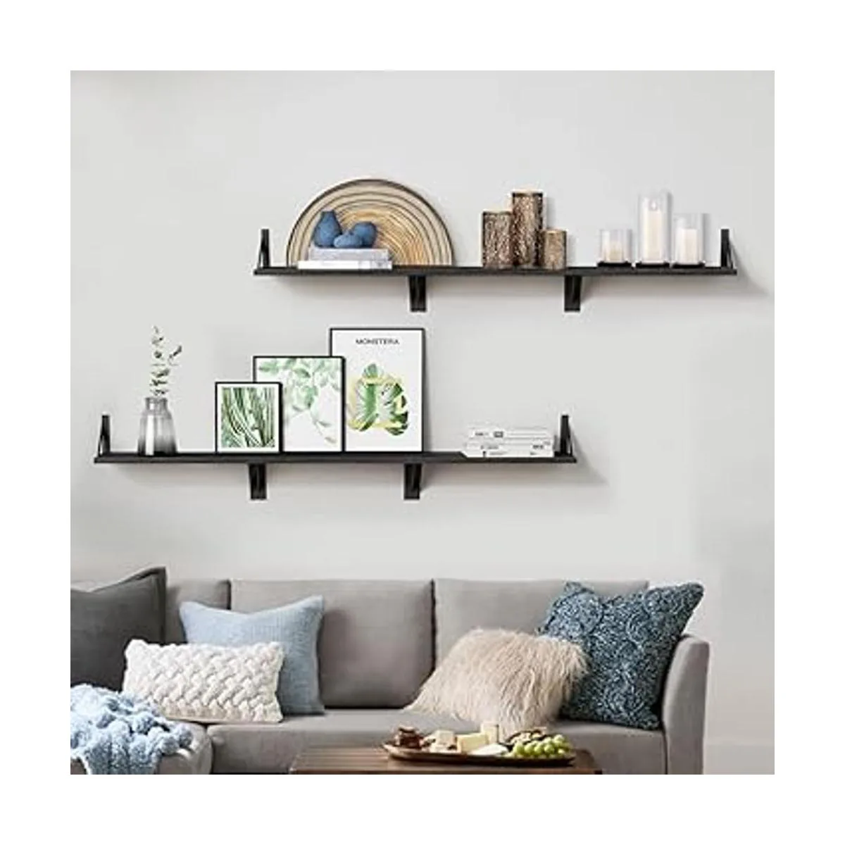 Múltiples combinaciones, más creatividad: el diseño clásico triangular del soporte de metal negro ofrece dos métodos de visualización. Instala estos estantes del mismo tamaño con la tabla en la parte superior de los soportes o debajo en la pared de hormigón para proporcionar más opciones de decoración. Cuélgalos como una estantería larga o una estantería vertical para mostrar plantas, botella de perfume, tarros de velas, fotos familiares, álbumes, nudillos, juguetes de peluche, coleccionables, libros ilustrados, libros para niños.
