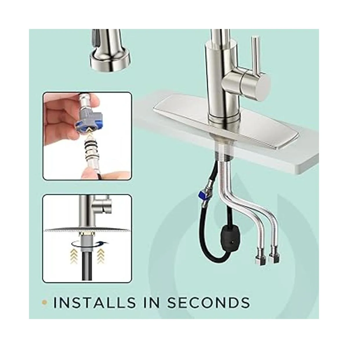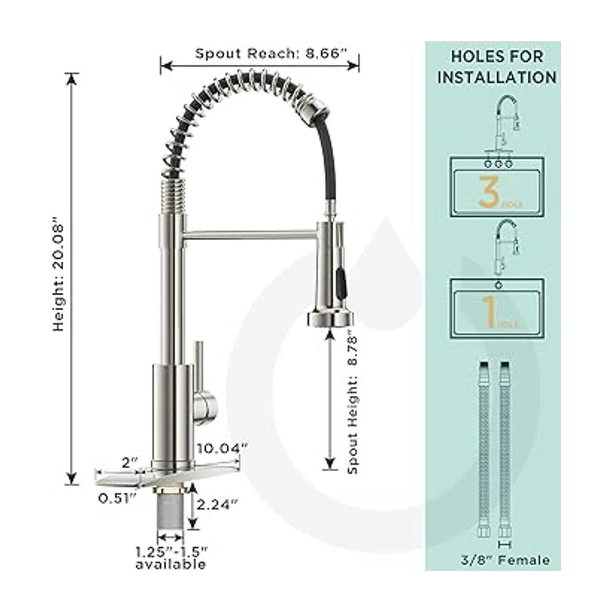 Fácil instalación: la manguera de conexión rápida puede ayudarte a instalarlo tú mismo en 15 minutos, la placa de cubierta puede adaptarse a fregadero de cocina de 1 agujero y 3 agujeros.