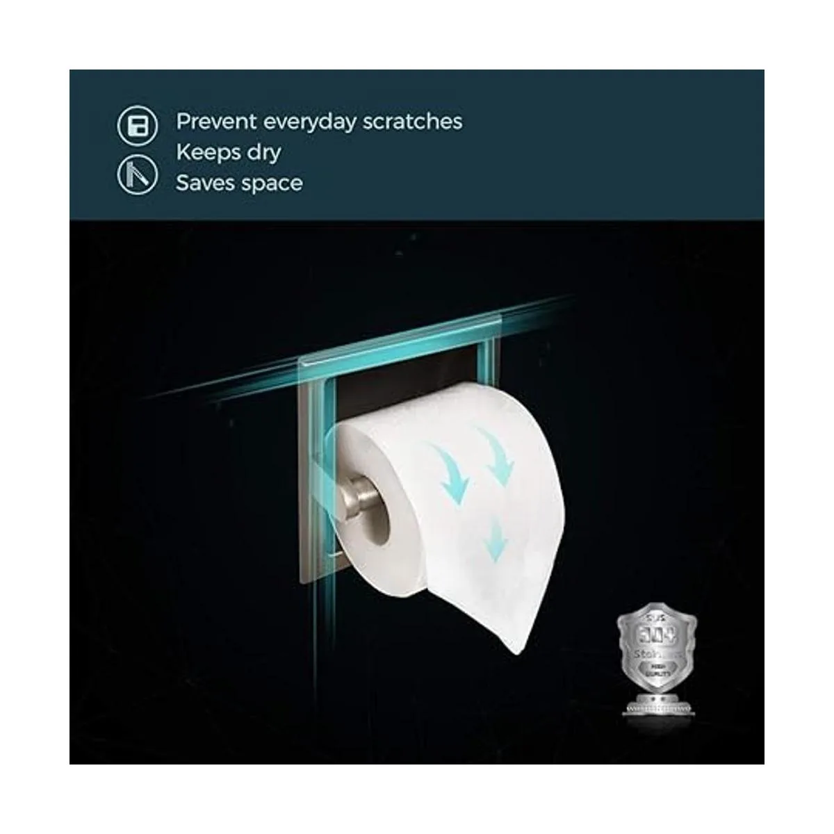 Durabilidad: el cuerpo del soporte de papel para inodoro y todos los accesorios están hechos de acero inoxidable 304, que es duradero y eficaz en la prevención de la corrosión y el óxido. Diseño empotrado eficaz para evitar arañazos diarios, se mantiene seco y ahorra espacio.