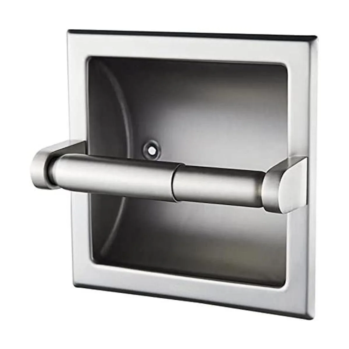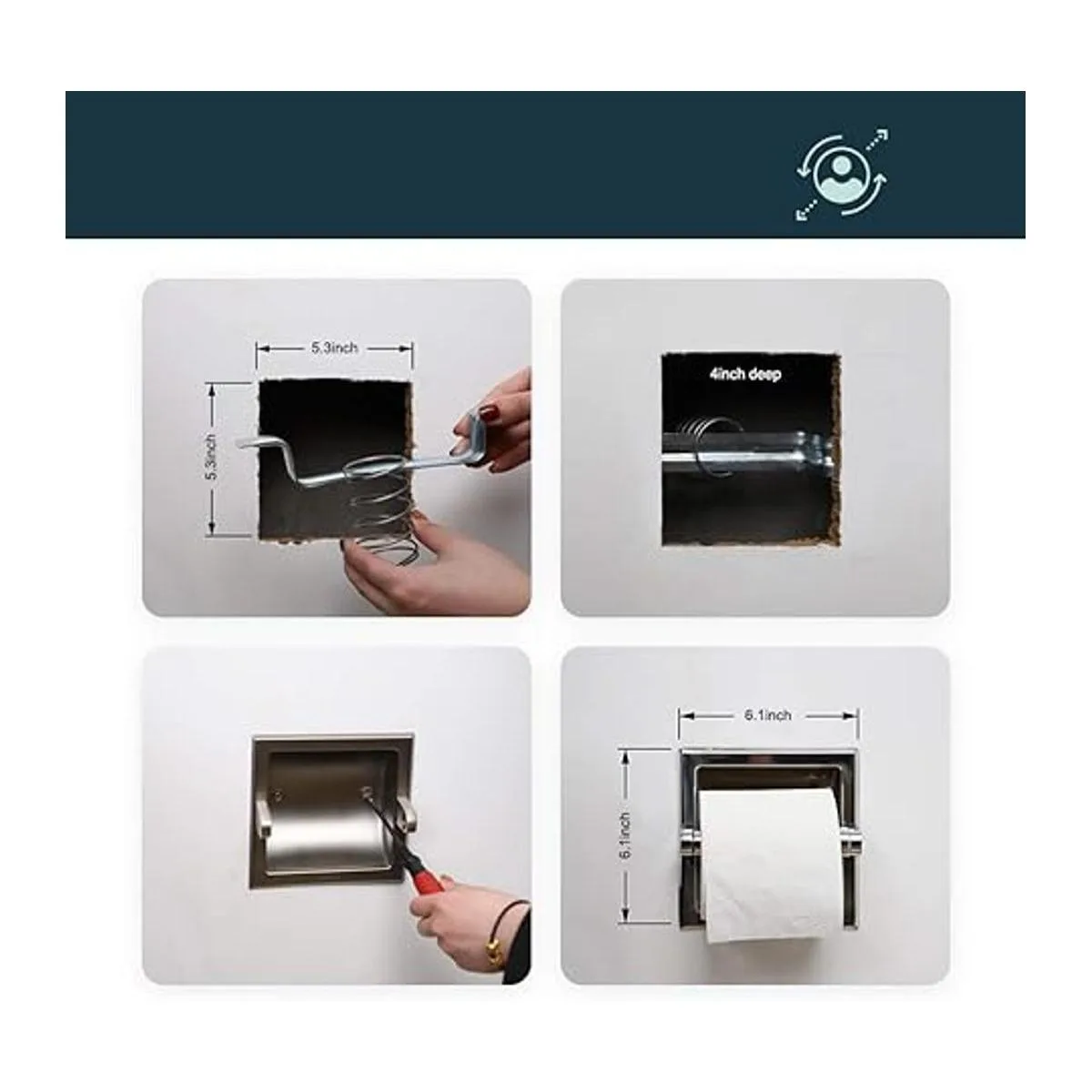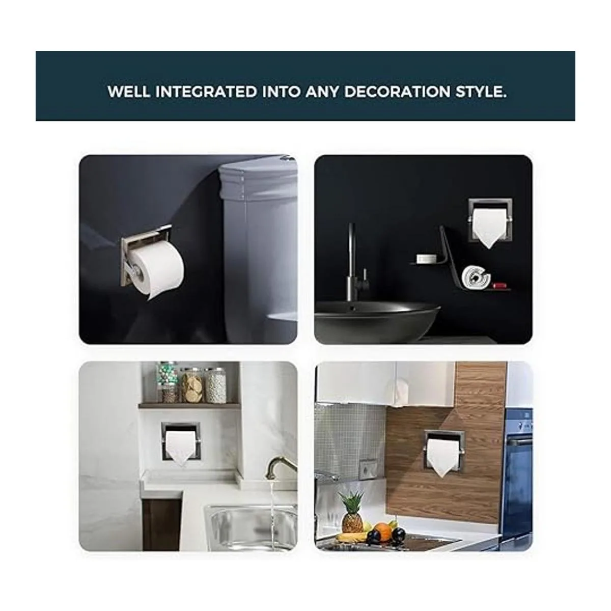 Versatilidad: la estructura del soporte para rollo de papel higiénico empotrado es resistente, se puede instalar en el armario de madera de la cocina o armario, la pared de cemento en el baño o dormitorio, etc. Se puede integrar bien, combina con cualquier estilo de decoración.