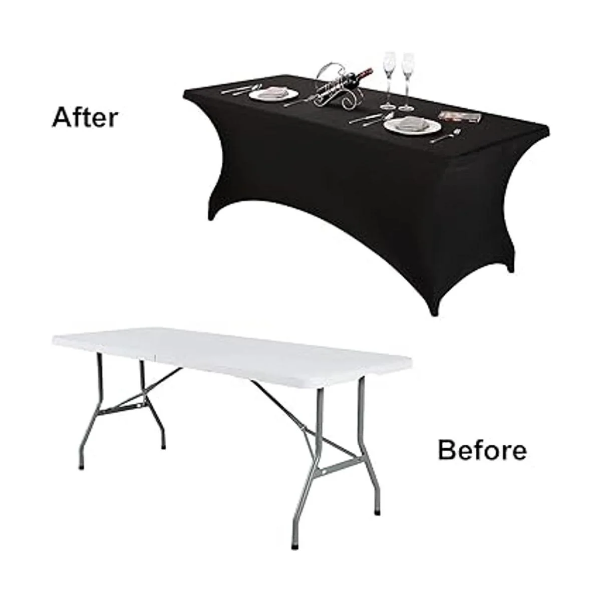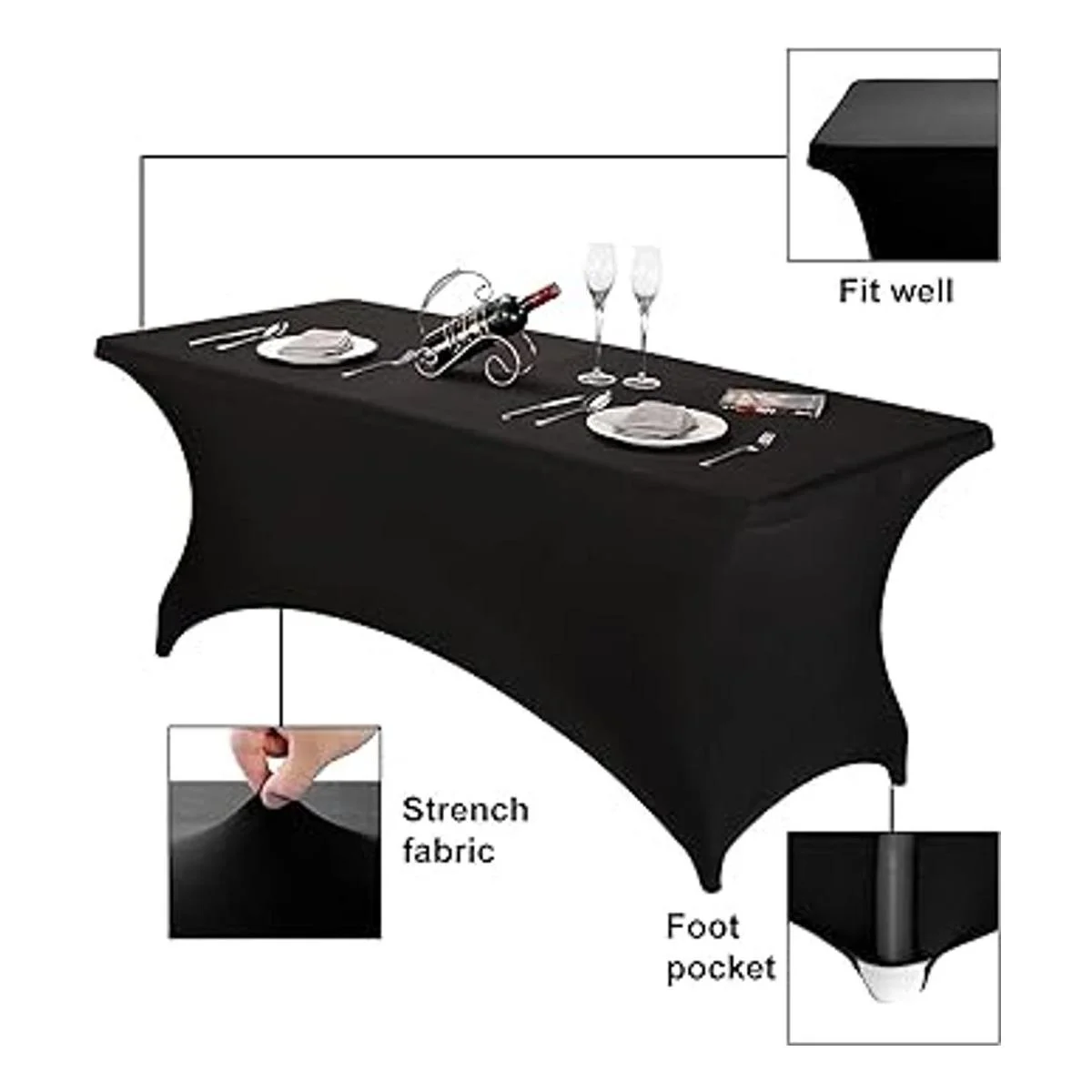 FORLIFE Fundasmanteles de elastano, de ajuste universal para mesas rectangulares de 6 pies, para patios, bodas, banquetes, fiestas 6 pies, negro