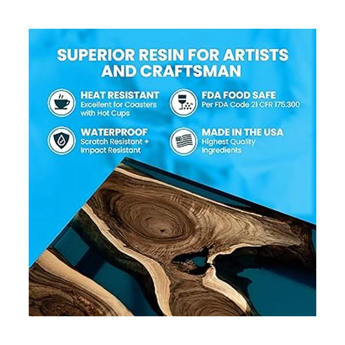 Fórmula cristalina de resina epoxi, resina del artista para revestimiento, fundición, arte de resina, geodas, mesa, mesa superior, mesas de borde vivo, mesas de río, no tóxica, kit de 1 galón