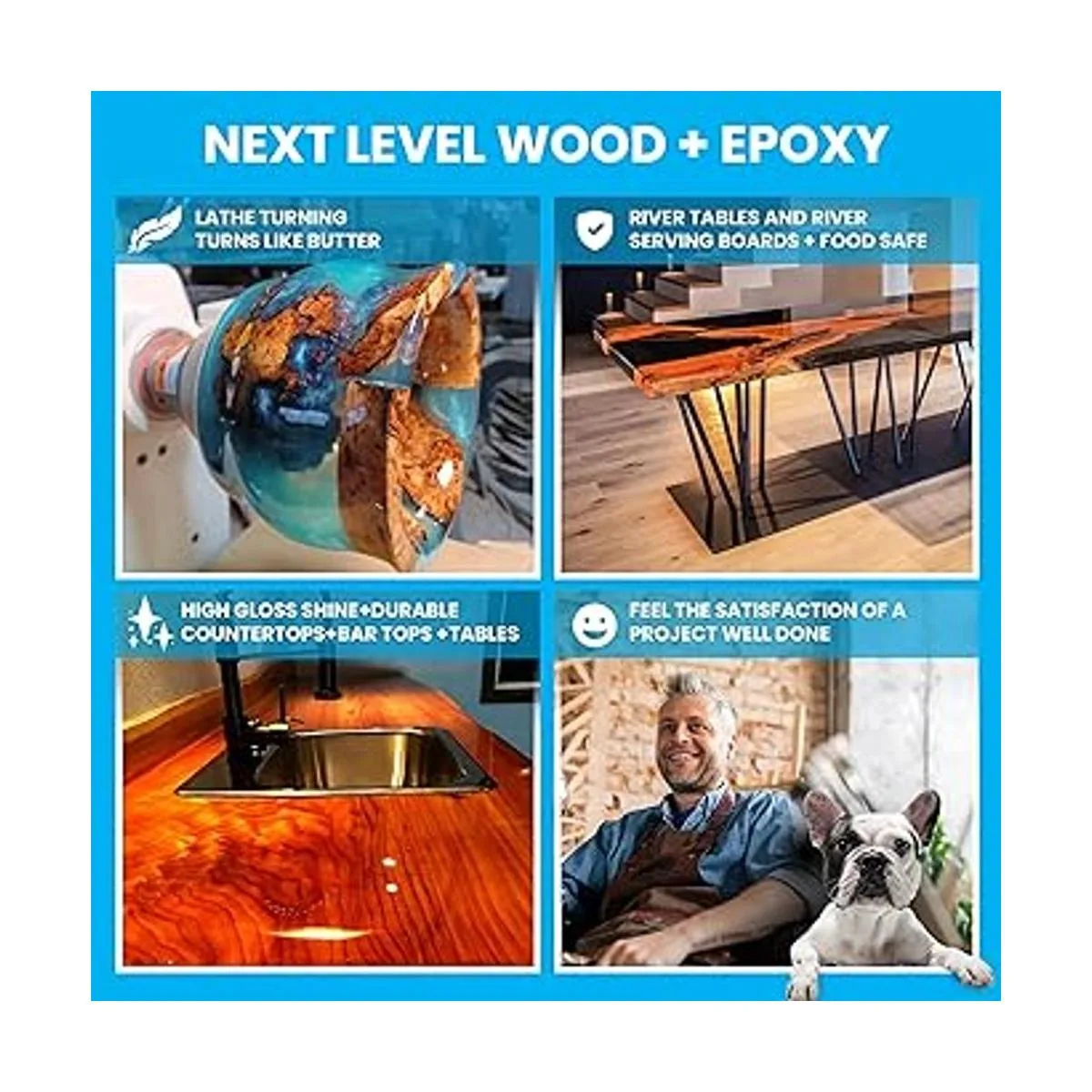 Es resistente a los rayos UV, autonivelante y cura la roca sólida con un brillo de espejo de alto brillo. Añade un hermoso revestimiento de vidrio a cualquier superficie. Disfruta del tiempo de trabajo más largo de 45 minutos que da más tiempo para el proceso creativo. Es libre de BPA y seguro para alimentos para su uso en encimeras, tablas de cortar y otros artículos en la cocina.