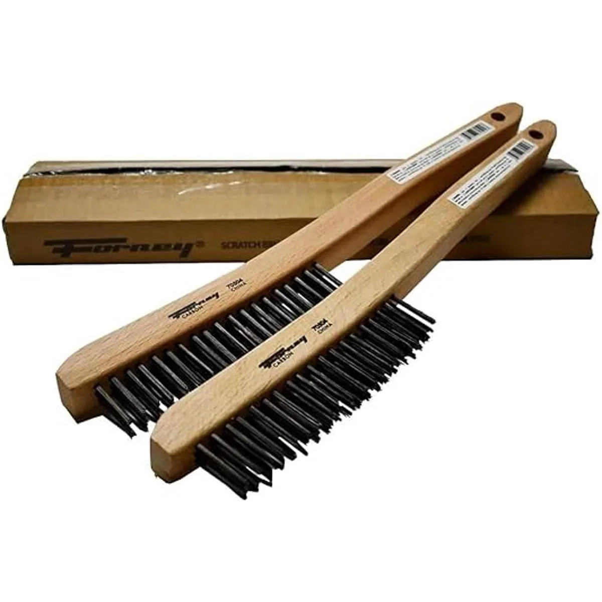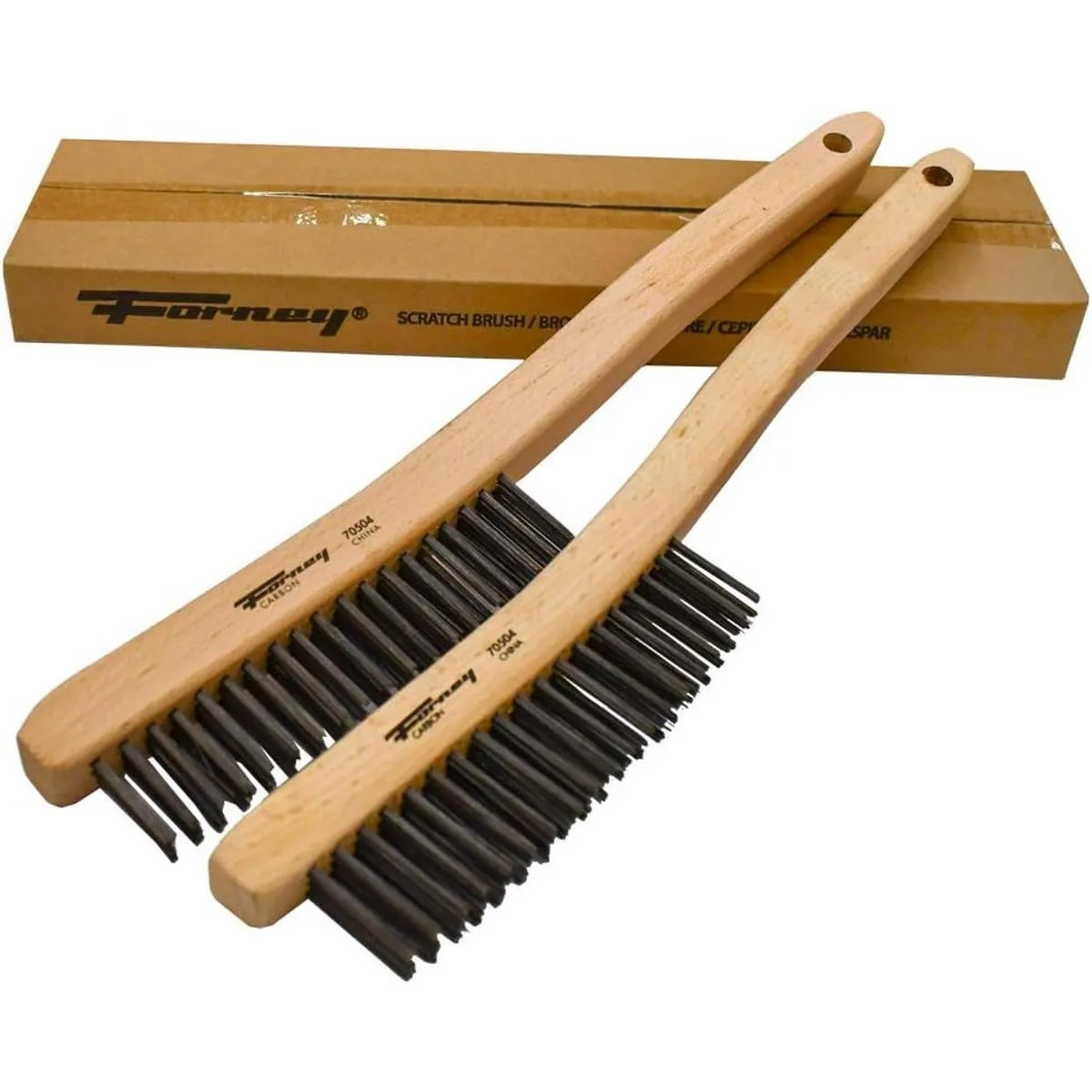 Forney 70504A Juego de 2 cepillos de alambre de acero al carbono con mango de madera curvada, 13.2 in x 0.0 in, varios