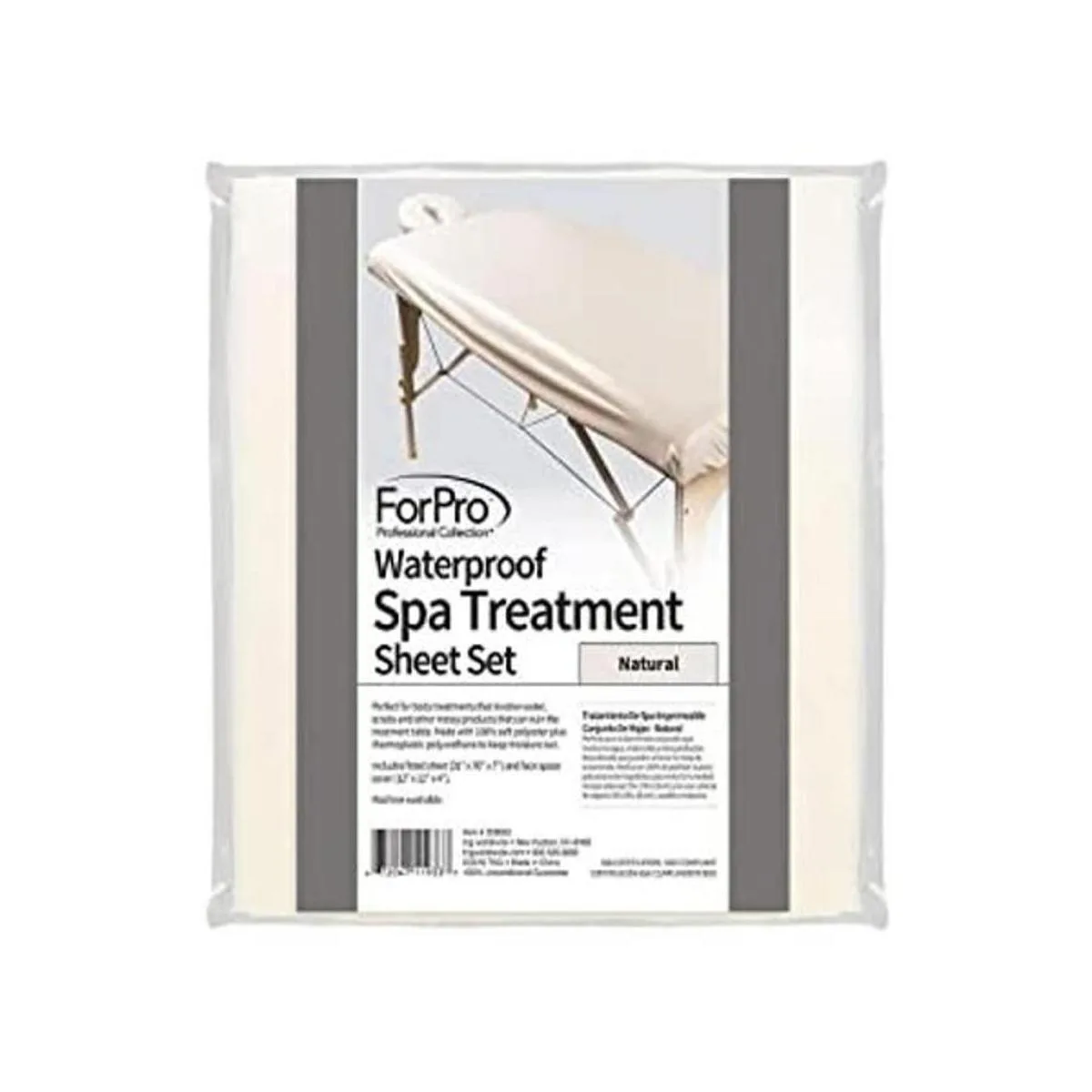 ForPro Funda impermeable para mesa de masaje, juego de sábanas protectoras de tratamiento de spa para mesas de masaje, lavable a máquina, incluye sábana bajera de masaje y funda para reposabrazos, natural