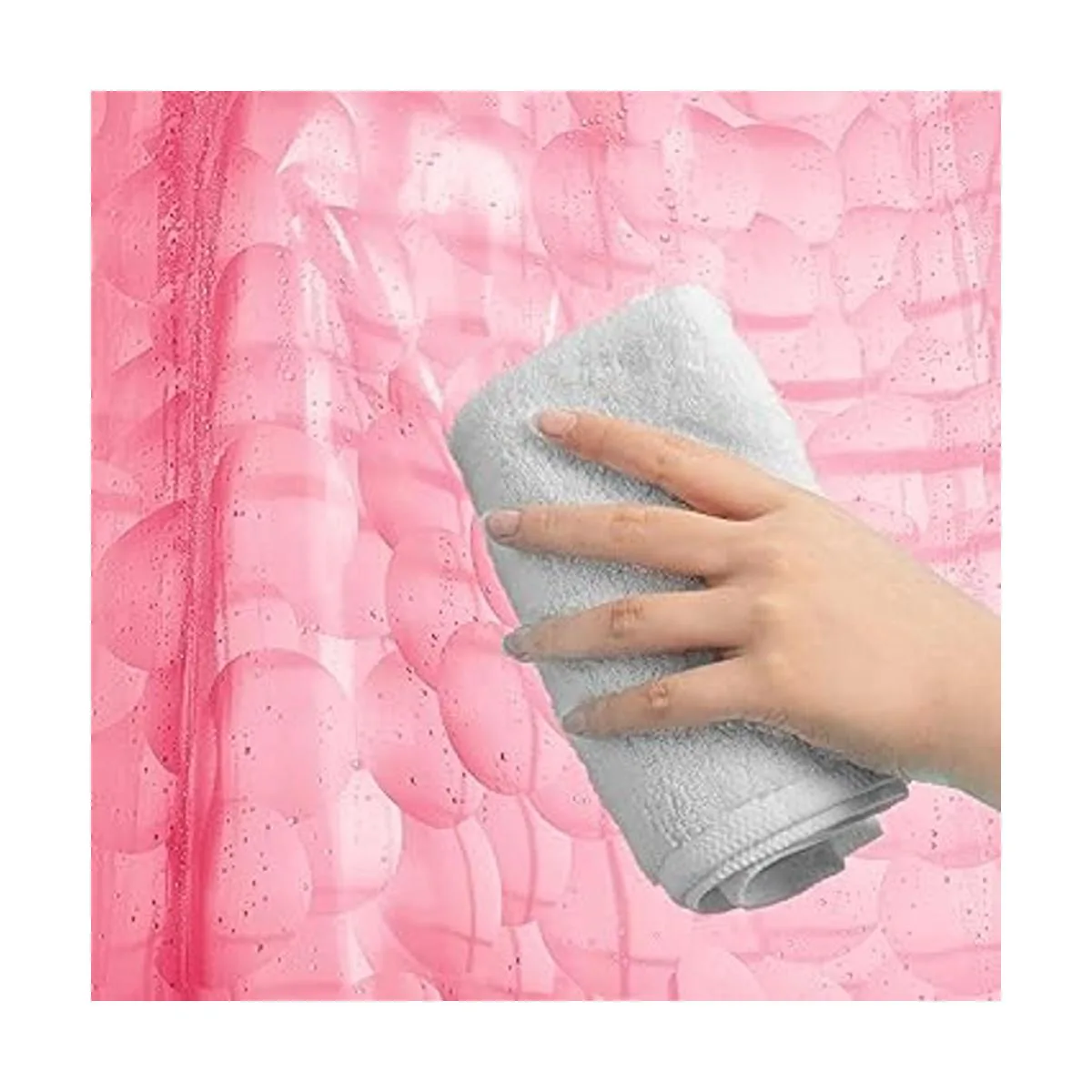 Forro de cortina de ducha de diseño más reciente, forro de plástico con burbujas 3D, sin olores, ecológico burbujas rosas
