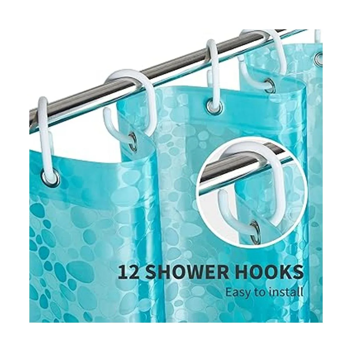 Duradero y duradero: el dobladillo reforzado en la parte superior y los agujeros de metal resistentes al óxido evitan que se rompa. Incluye 12 ganchos para cortina de ducha para una fácil instalación. Además, es fácil de limpiar y mantener, simplemente límpialos con un paño húmedo.