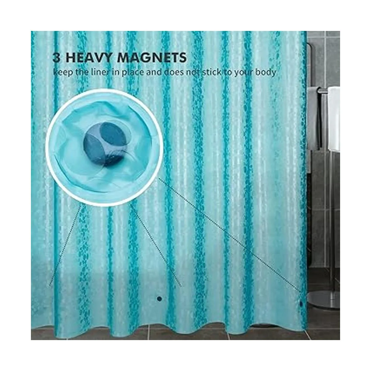 Forro de cortina de ducha resistente EVA, forro de ducha impermeable con 12 ojales de metal a prueba de óxido y 3 imanes con peso, cortina de ducha de baño de 72 x 72 pulgadas, color verde azulado