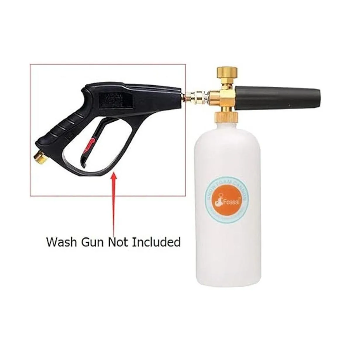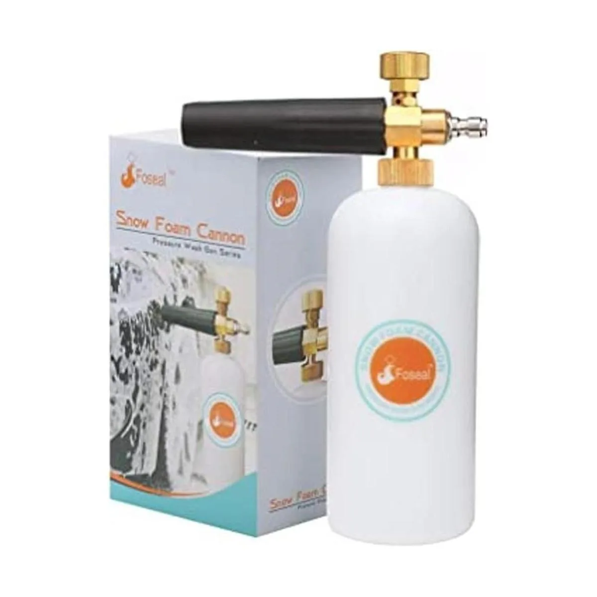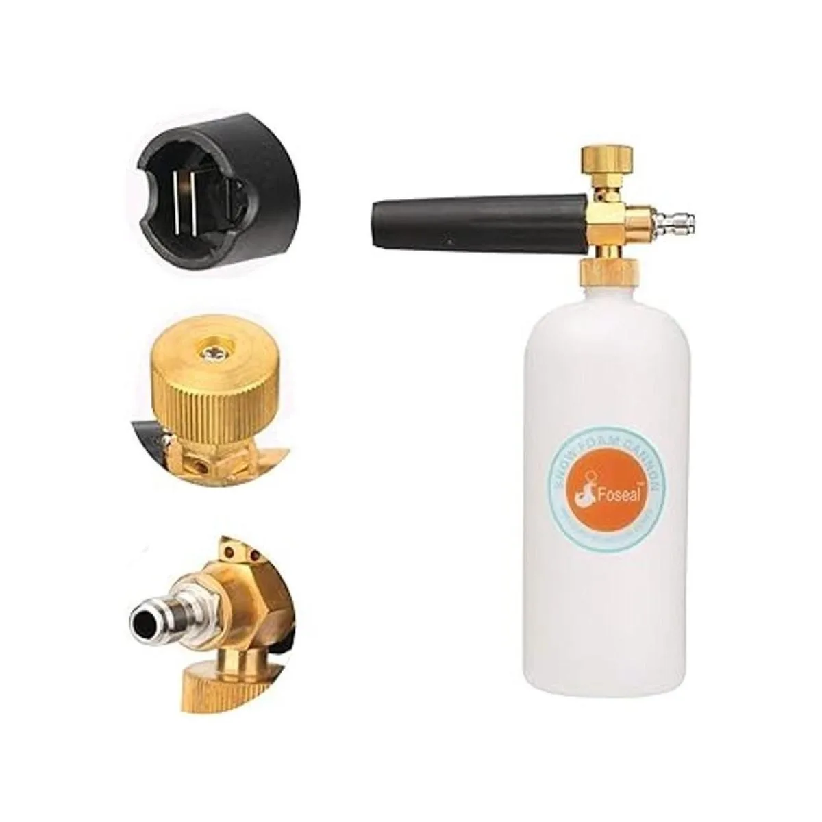 Foseal Cañón de espuma de nieve ajustable con perilla de latón resistente, pistola de espuma de liberación rápida de 14 pulgadas para pistola de lavado a presión, botella de 1 L