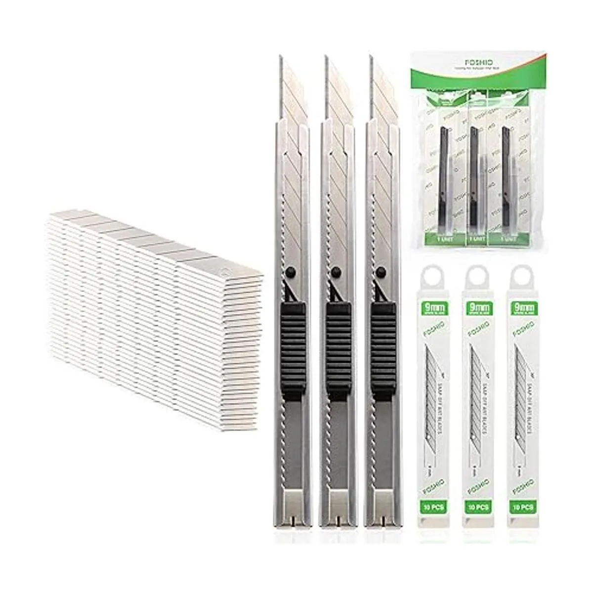FOSHIO Cuchillo utilitario retráctil con hoja a presión de 30 grados, cuchillo cortador de caja de 0.354 in, vinilo de oficina y cuchillos de manualidades de corte de papel, paquete de 3