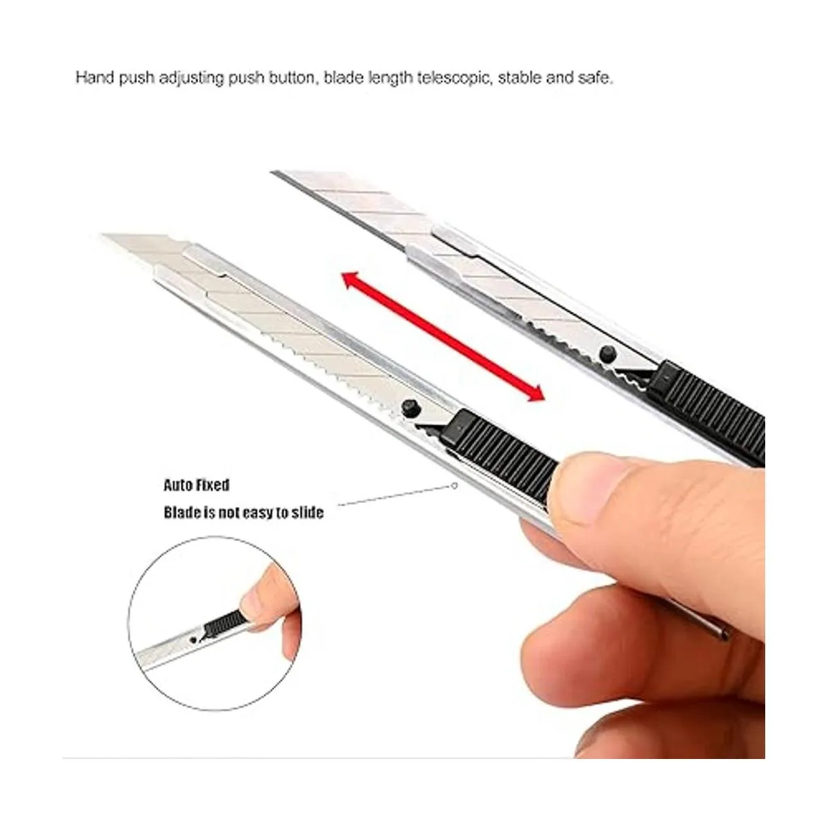 Puedes pulsar el botón con la mano cuando quieras cambiar la longitud de la hoja. Cortadores de caja retráctiles que pueden fijar automáticamente la hoja en cualquier longitud adecuada para un corte de seguridad, no se desliza fácilmente.