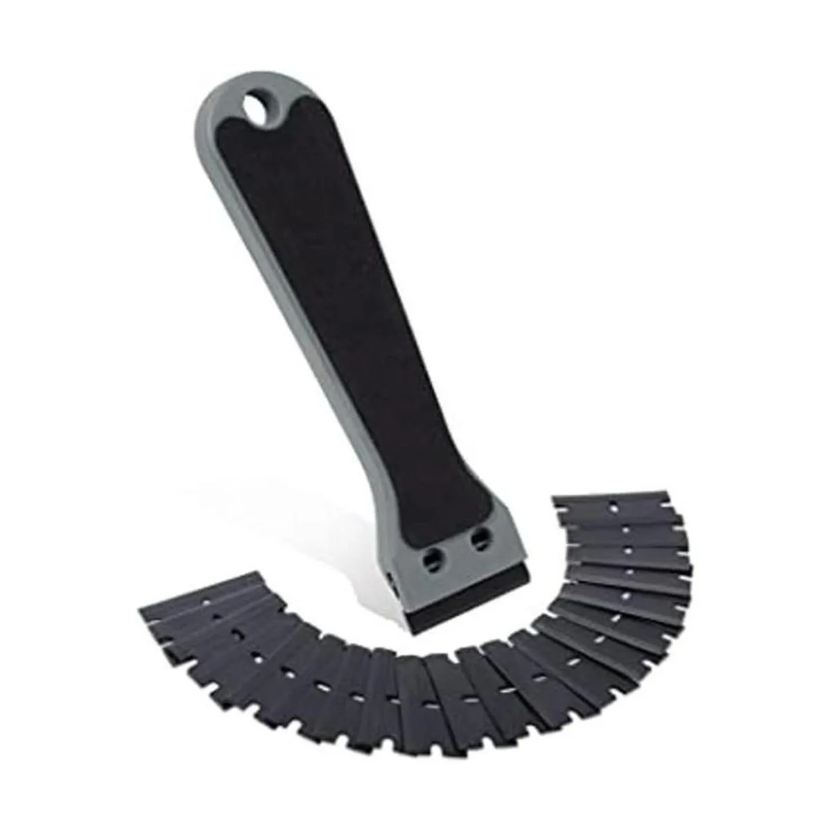 FOSHIO Rascador de plástico de 6 pulgadas con 20 cuchillas de afeitar de plástico, herramienta raspadora para pegatinas, juntas, removedor de etiquetas gris
