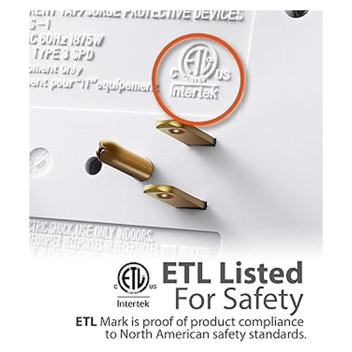 Salidas seguras y a tierra: el adaptador cumple con el estándar UL 498A y está listado por ETL. Las tomas de tierra proporcionan mayor seguridad.