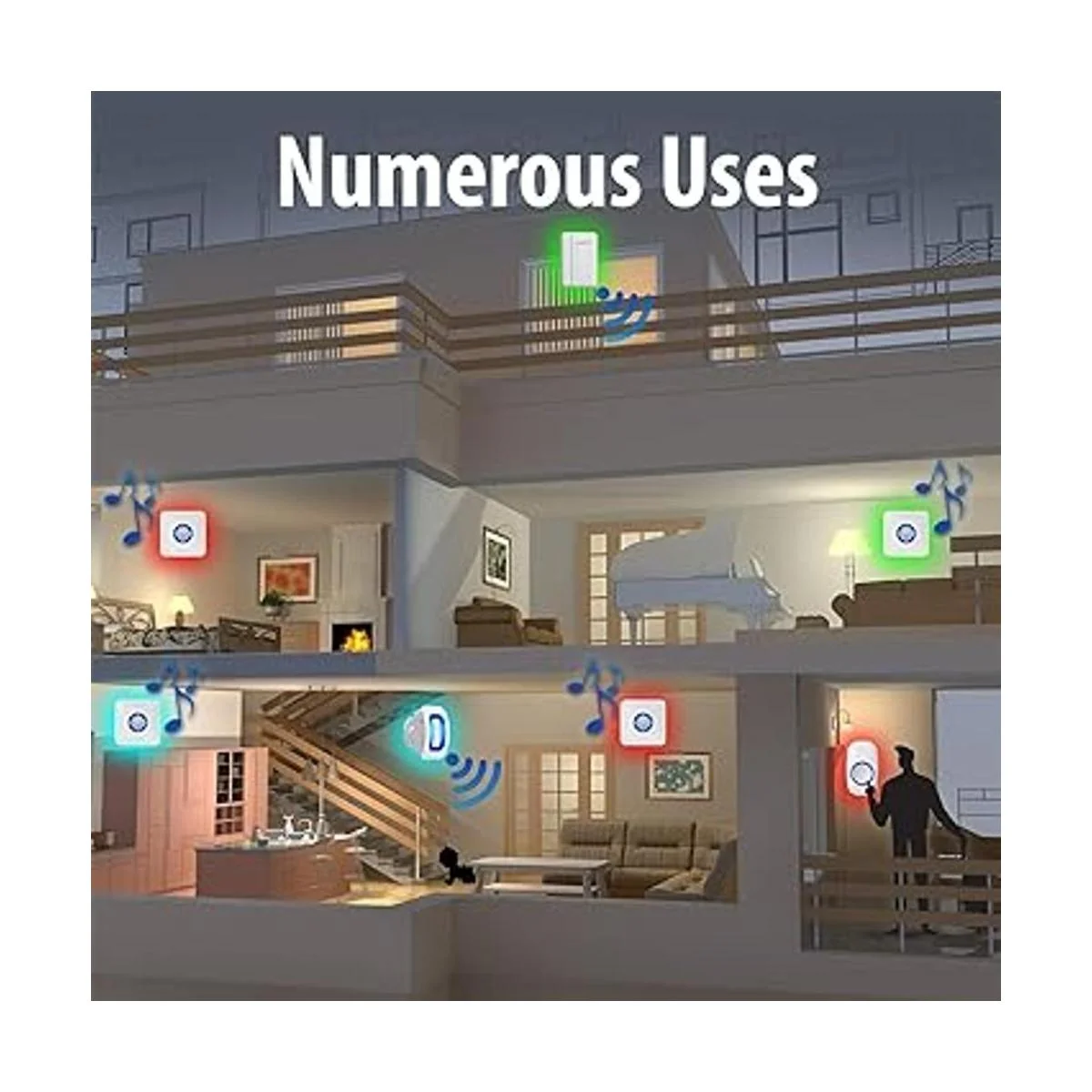 Fosmon Wavelink 51007HOM Timbre inalámbrico para puerta (500 pies, 52 sintonías, 4 niveles de volumen, indicadores LED) con dos sensores de contacto de seguridad de alerta de entrada de puerta magnética, 1 receptor inalámbrico para timbre