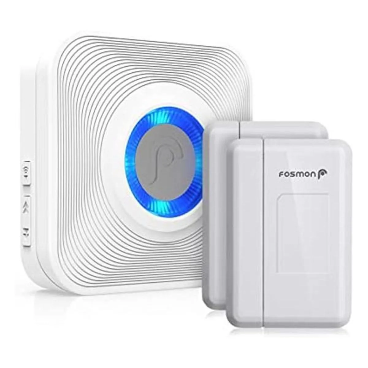 Fosmon Wavelink 51007HOM Timbre inalámbrico para puerta 500 pies, 52 sintonías, 4 niveles de volumen, indicadores LED con dos sensores de contacto de seguridad de alerta de entrada de puerta magnética, 1 receptor inalámbrico para timbre