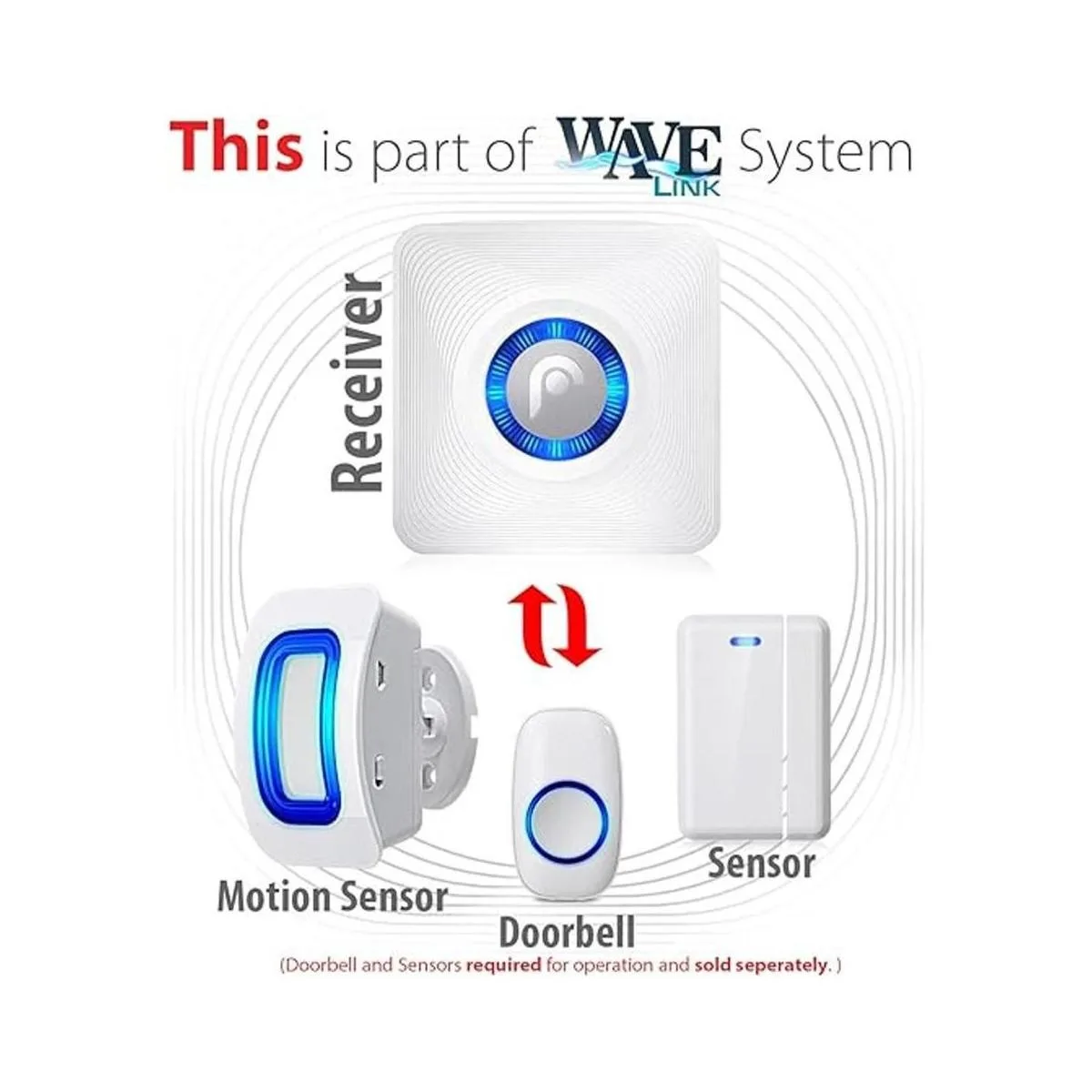 Amplía tu sistema Wavelink con un receptor de timbre inalámbrico adicional para puerta: amplía el sistema de alarma de puerta inalámbrico con receptores adicionales. Empareja hasta 10 receptores WaveLink, maximizando tu sistema en varias habitaciones de tu negocio o casa.