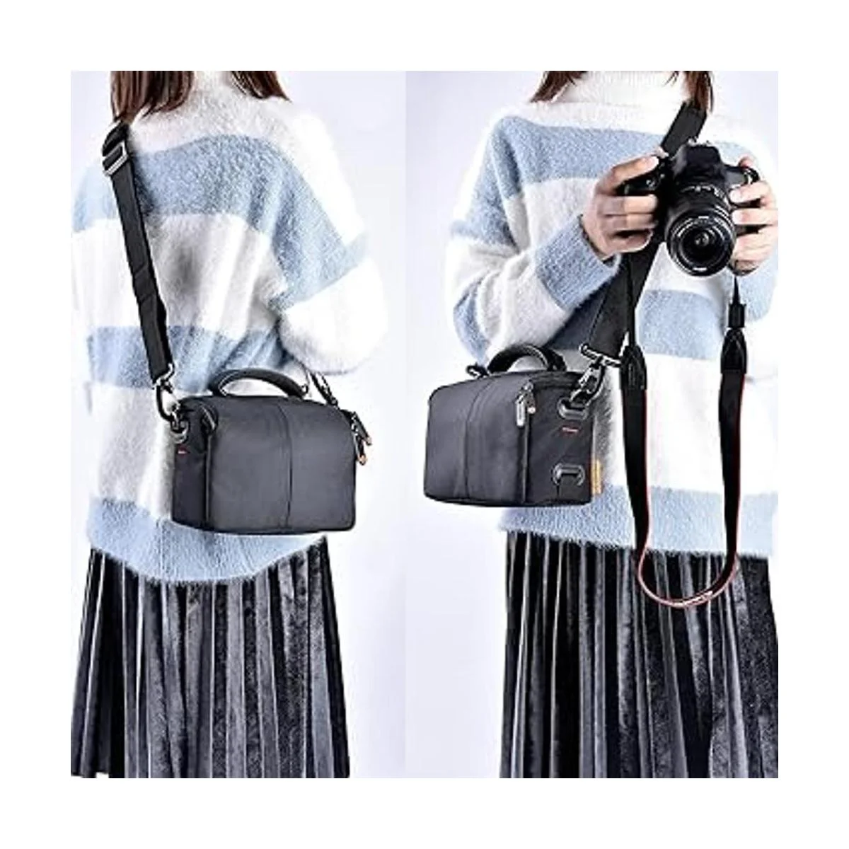 Correa de transporte ajustable para el hombro, cierre de superposición protector con cremallera. Viene con una cubierta de lluvia adicional, gran protección. Pero no es una funda subacuática, no lo pongas en agua o aguaceros pesados.