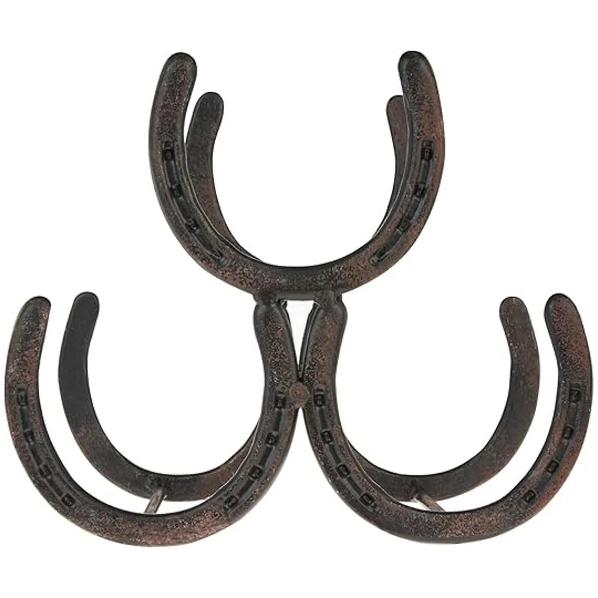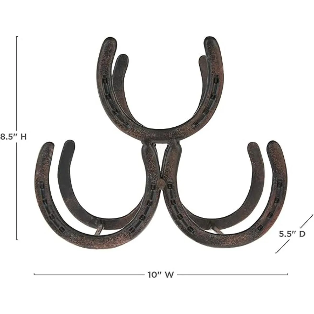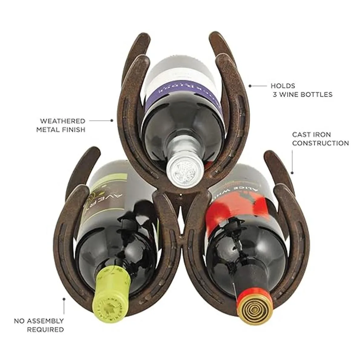 Foster Centeno Horseshoe Encimera 3 Estante de metal y soporte para botella de vino, hierro fundido, 8 pulgadas, óxido, 2324